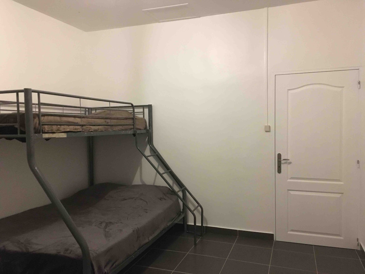 Chambre et table d'hôte. bienvenue dans la chambre Dolomieu(chambre à l'aveugle fenêtre donnant dans le hall) avec deux lits simples dans une Grande maison familiale au pied du volcan, dans un hameau tranquille avec jardin, salon, billard et jeux de société et jacuzzi. Avant d'attaquer votre journée un petit déjeuner vous sera offert à l'heure qui vous convient. Nous serons heureux de vous accueillir Luc,Alexandrine,Nathan 3ans, Evie (chien), Olaf et Luna (chats)