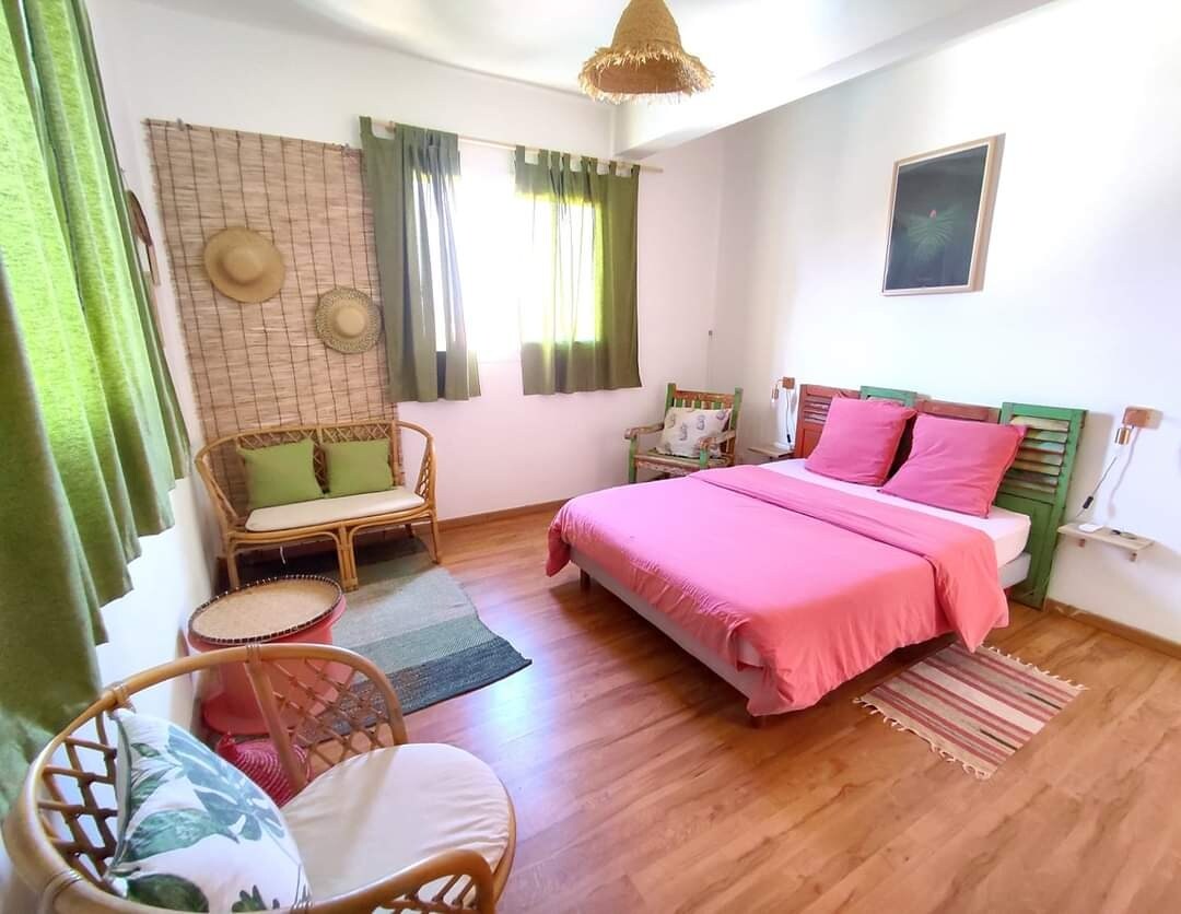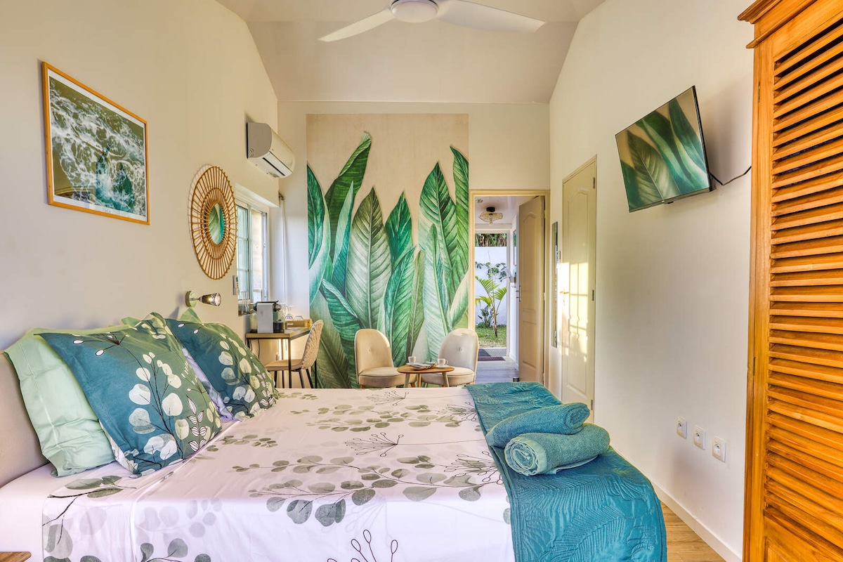 Partie de maison privée avec une chambre, une salle de bain, toilettes, cuisine sur coin terrasse à usage exclusif dans grande villa. Accès aux lieux par portes privées. Environnement calme. Centre ville à moins de 5 mins en voiture, arrêt bus à proximité ( 100m). Le logement se trouve à mi-chemin entre mer et montagnes ( Plage de Saint Pierre à 10km, Etang-Salé , Plaine des Cafres (lieux de randonnées : Piton des Neiges, Grand-Bassin, Volcan ,Notre Dame de la Paix ) à moins de 30 mn