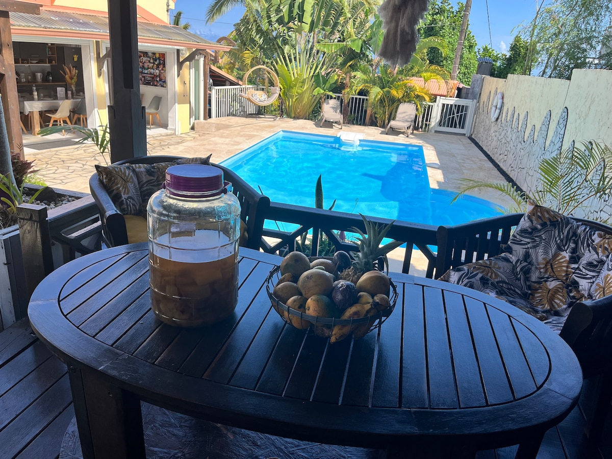 Cette maison, nous l'adorons! Une petite case centenaire en bois de fer... Un jardin luxuriant débordant de plantes tropicales... Deux varangues et une terrasse avec brasero... Un aménagement soigné... À côté, le Cap Méchant pour des sunsets fabuleux, et l'incroyable piscine littorale du Baril... Deux salles de bains à ciel ouvert, avec douche ou baignoire... et le soir, si vous le souhaitez, les repas succulents de Nathalie livrés à votre table... Vous serez heureux chez Mamie Méchant!