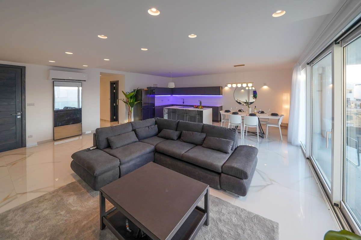 Welcome to your luxury sky-high escape in Malta’s architectural masterpiece. Perched on the 27th floor, this ultra-modern apartment offers unbeatable panoramic views of the Mediterranean, from Portomaso Marina to Spinola Bay and Balluta Bay, creating an unforgettable backdrop for your stay.  Whether you’re here for romance, business, or a Christmas getaway, this home combines stylish design, comfort, and a prime location in vibrant St. Julian’s, one of Malta’s most desirable neighborhood.
