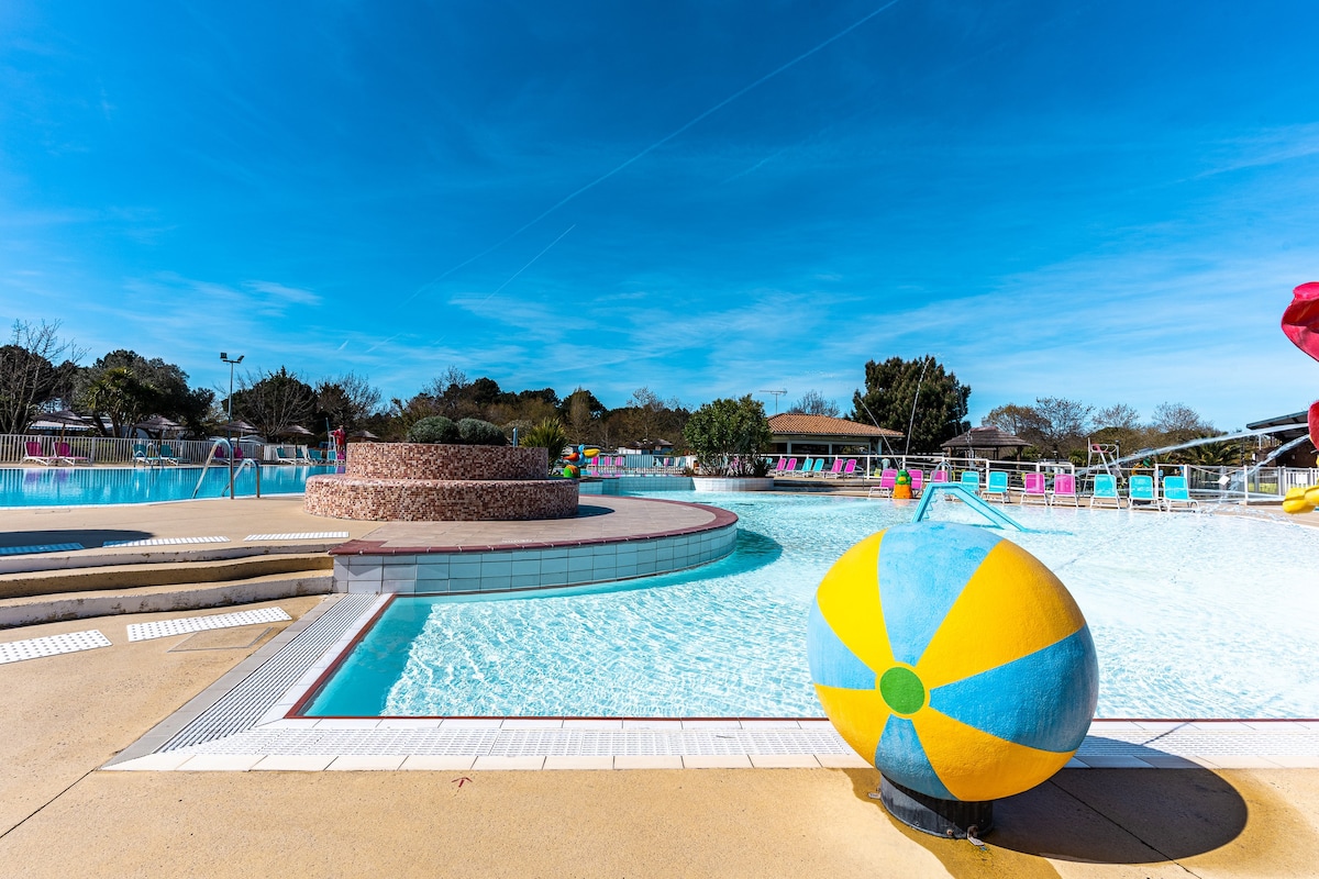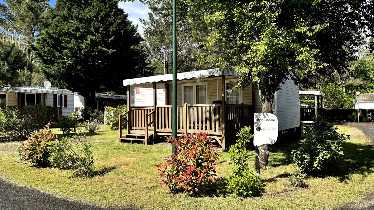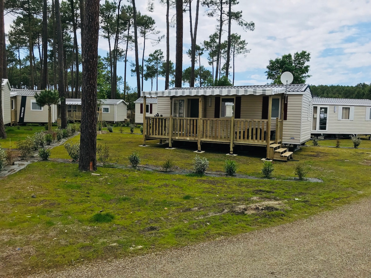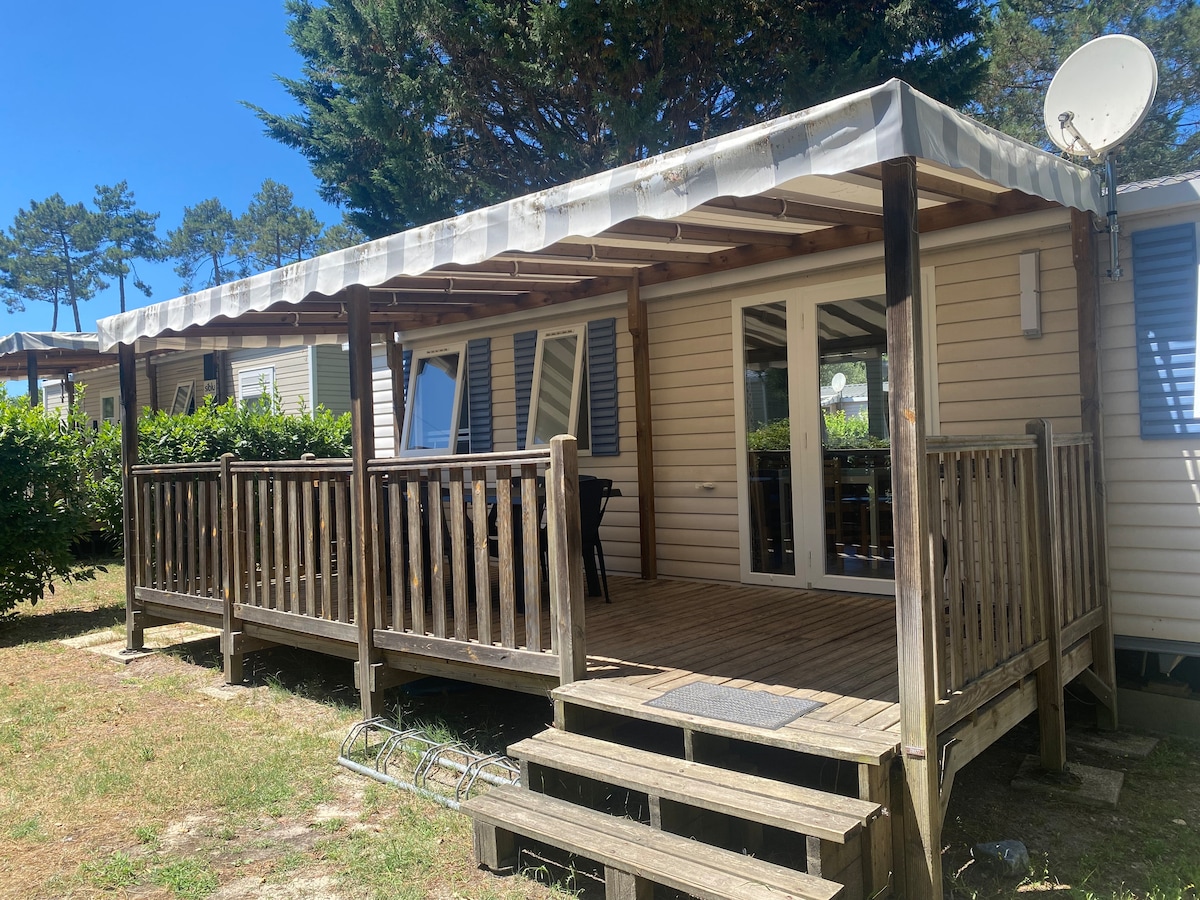 Bienvenue dans les Landes ! Dans un environnement naturel, entre forêt de pins et océan, venez vous reposer au camping "Les vignes", 5 étoiles, de Lit-et-Mixe. Vous pourrez profiter des animations, de l'espace aquatique, de l'espace bien-être, ainsi que des équipements sportifs. L'hébergement est au calme et, est entièrement équipé, avec Plancha, TV et kit bébé (lit parapluie et chaise haute). Nous vous souhaitons un agréable séjour ! Lionel&Aurélie