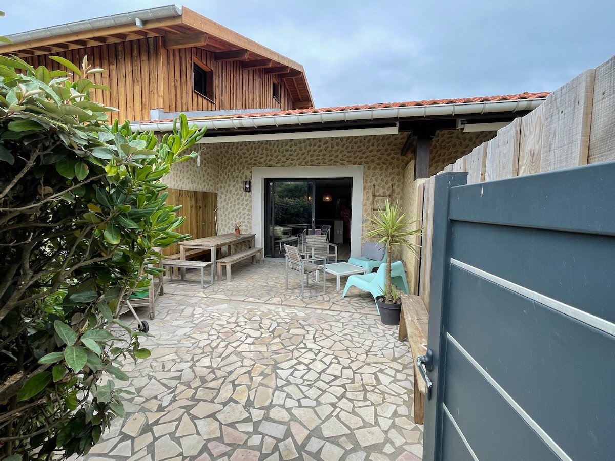 **Refait à neuf premier semestre 2022** Notre maison patio est située en face de la plage de la Gravière à Hossegor. La piste cyclable passe devant la residence. Petite residence de 5 lots mitoyens avec parking pour chaque villa. Vous pourrez profiter de la plage de la gravière avec son école de surf et sa fameuse cabane " la cabane de la gravière" , l'endroit parfait pour siroter un verre lors du couché du soleil. Notre maison est ideal en famille ou entre amis.