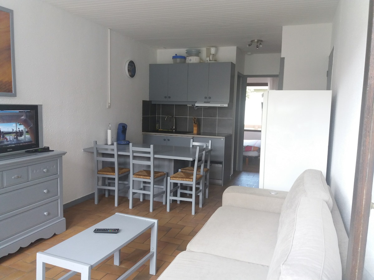 A l'abri de l'agitation des campings, studio lumineux de 18m2 en entresol dans maison individuelle avec entrée indépendante . Quartier residentiel calme et arboré, à deux pas des pistes cyclables et de l'océan (3km à vélo). Proche centre équestre (1km à vélo). Ce logement fonctionnel est décoré dans un esprit vacances en bord de mer. Pièce principale 18m2 : 1 lit double, lit simple , coin cuisine équipée. Balançoire et accès au jardin avec coin repas. Linge des lits fourni. Présence d'un chien.