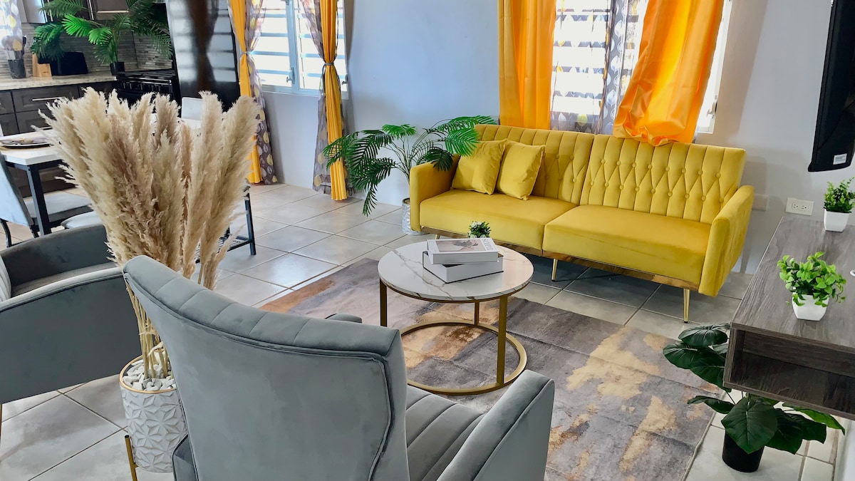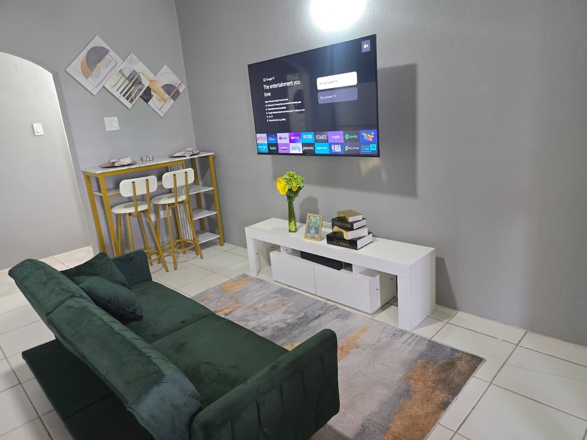 The Green Zennia, your luxury Bird Rock retreat. This one-bedroom suite offers contemporary decor with island warmth, comfort and convenience creating the perfect place to unwind. Conveniently located to fast food, food court, gym, and supermarkets within walking distance. Fully equipped modern kitchens. Minutes away from Casino, Golf Course and downtown Basseterre. Public transportation only a few steps away. Stay connected and relax in this high-speed, smart TV, keyless entry island treasure.