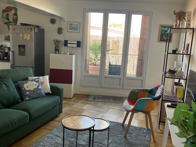 Lovely and spacious one bedroom apartment, for a couple and up to 4 guests; The 2 sofas can be converted into 2 single beds (80 x 180 cm), ideal for children. The apartment is located in a quiet street, and is very secured with a building keeper and video surveillance. While enjoying the calm of the street, you will be close to nice places to eat, a supermarket just 3 minutes walk away, a beautiful park and many shops just close by. You will find easy ways to reach all Parisian sightseeings.