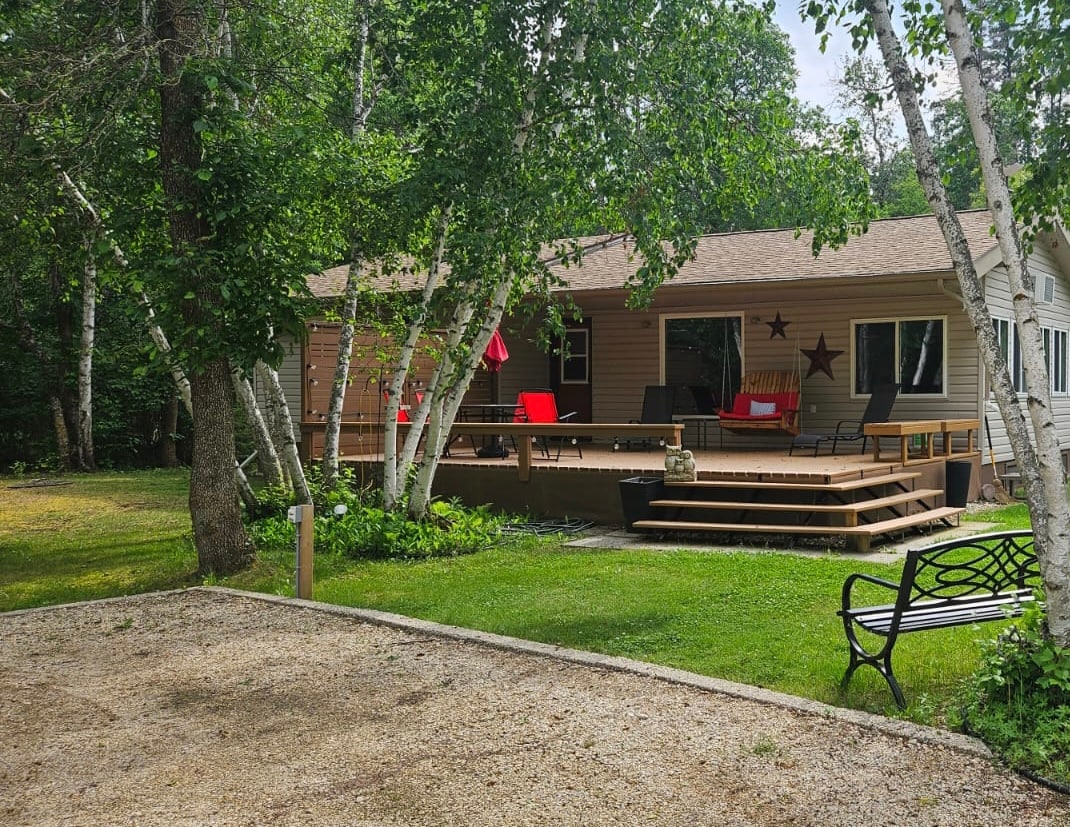 Enjoy a peaceful nature getaway just a 20-minute drive from Gimli town. Sleeps 8 with 4 full beds, Wi-Fi, fire pit, and BBQ grill. 🚶 Nearby: 9-min walk to the lake, 13-min walk to a playground, 9-min walk to a store for snacks and essentials. 🏖️ Relax at a hidden white-sand beach, perfect for swimming, sun, and lake-side fun. Ideal for families, friends, lake days, starry nights, and making lasting memories! 🌌