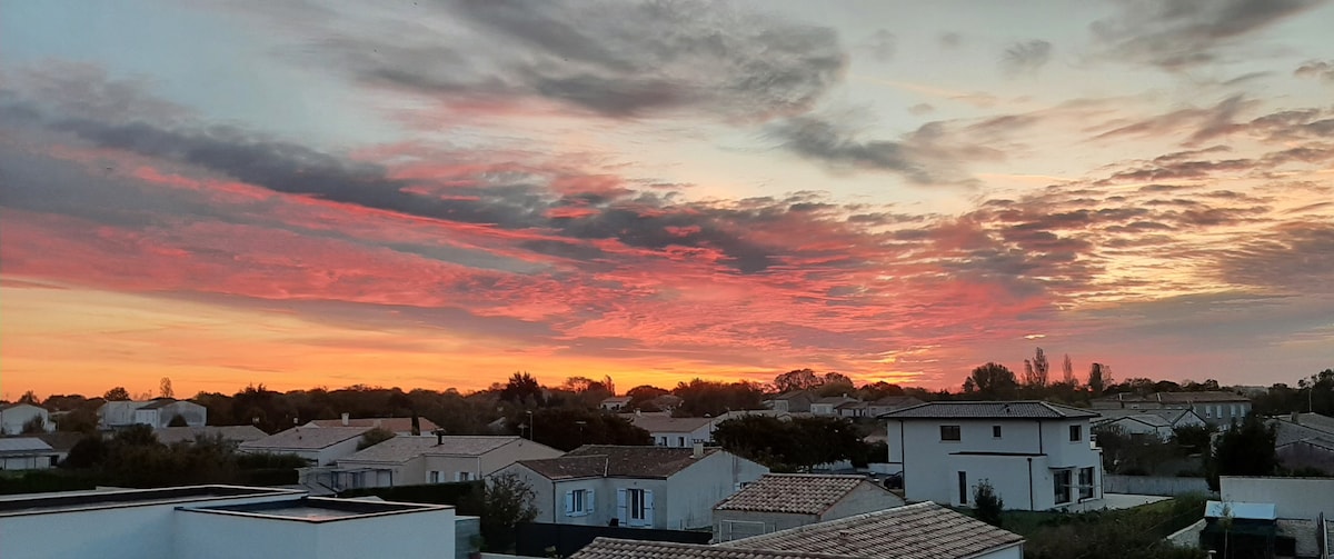 N ' HESITER à PRENDRE CONTACT en DIRECT pour toutes questions VOIR PHOTO. Détendez-vous dans ce logement unique. Proche des 3 iles, La Rochelle à 20min, Fouras à 6kms, le village situé sur La Velodyssée. Au 1er étage, 1 Suite parentale avec accès à un solarium 1 chbre avec 2 lits.1 1 mezzanine chbre avec 1 BZ de 140, . Stationnement privé , commerces 2mn à pieds. Draps et serviette en suppl Nettoyage 30€ optionnel ou à charge des voyageurs. Animale 10€ suppl par séjour.