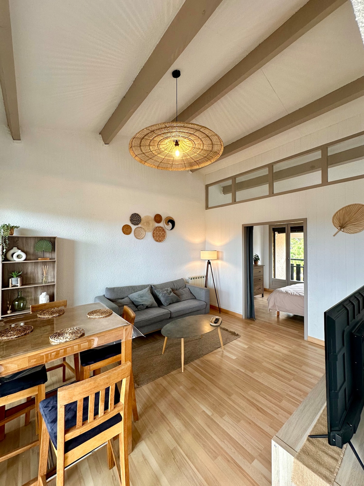 Can signifie “chez” en catalan : Can Montgaillard c’est “chez Montgaillard” un hommage aux grands-parents de Cyril. Ce projet familial a donné naissance à trois lieux indépendants, pensés pour allier charme, confort et élégance. À seulement 5 km des plages, ce logement d’exception situé au cœur de Saint-Laurent-de-la-Salanque, accueille jusqu’à 5 personnes. Piscine sur terrasse, volumes climatisés, deux suites avec salles de bains privatives, garage… tout est pensé pour un séjour inoubliables.