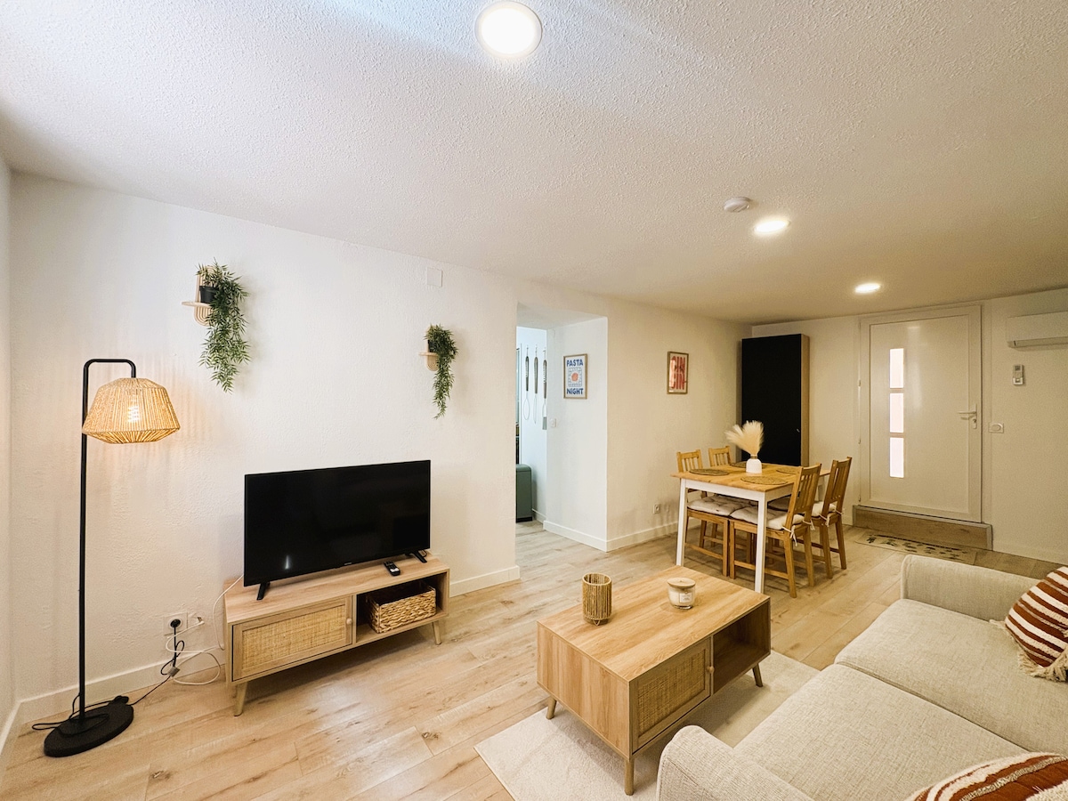 Profitez d'un logement élégant et central. Celui-ci est tout équipé: climatisation, lave linge, lave-vaisselle, four, plaque à induction, machine à café. Entre Mer et Montagne, venez découvrir nos plages situé à 10min en voiture, les Corbières et ses châteaux Cathar à 45min, les Pyrénées pour ses randonnées, piste de skis et son patrimoine historique sont à 50min! Transport en commun, commerces et restaurants accessibles à pied. Enfin, l'Espagne est à 40min seulement !