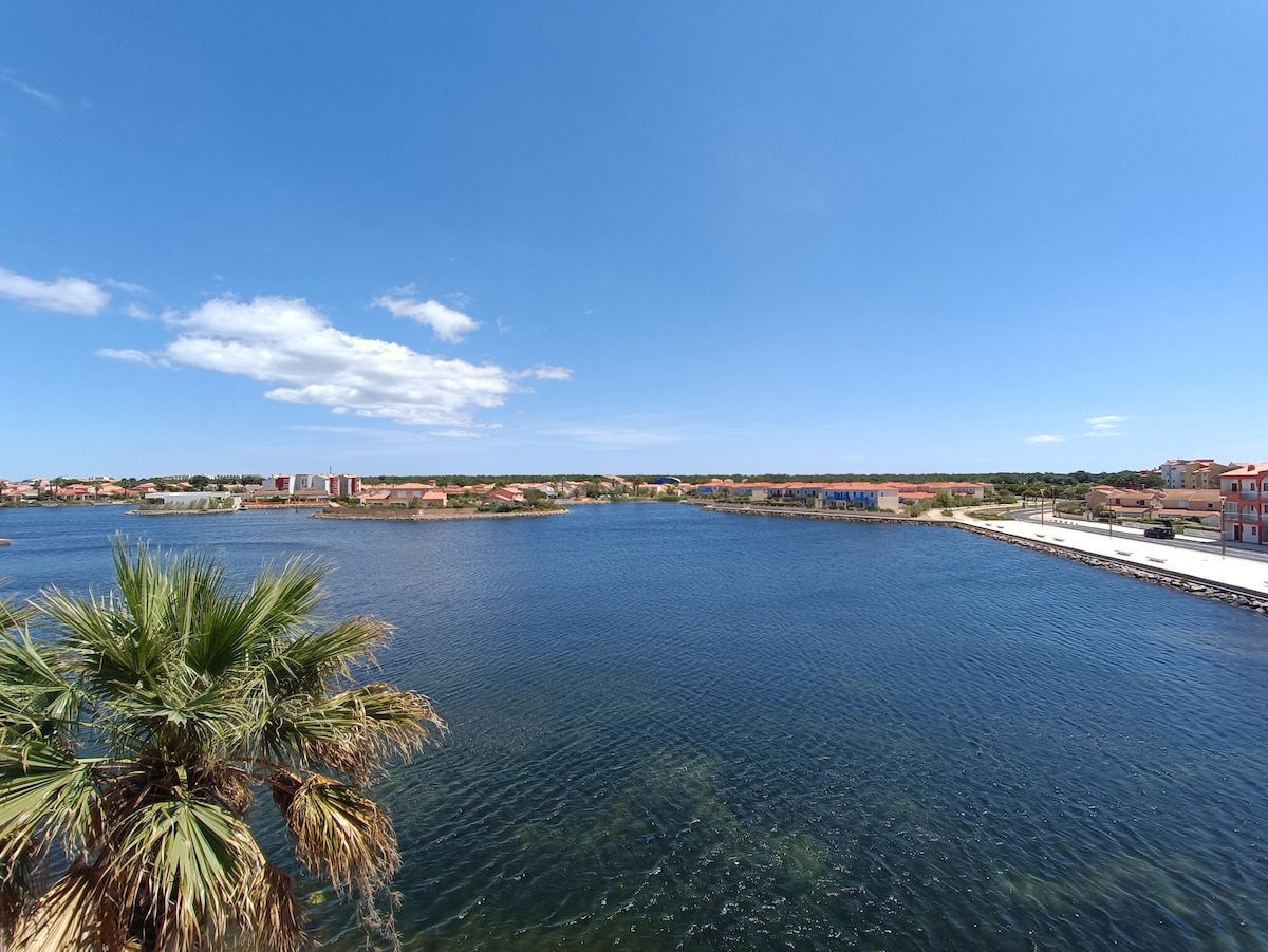 Appartement sur l’île la coudalere a le barcares Avec balcon ouvert vue magnifique sur le lac marin et les montagnes À proximité du marché de noël Village vacances avec complexe piscine Complexe sportif Jeux d’enfants Animations Plage du lac au pied du logement Pêche, activités nautiques Boutiques commerce restaurant à proximité Logement 4 personnes max Chambre cabine avec lits superposé Canapé vrai lit poltron e sofa Jaccuzi baignoire balnéothérapie Balcon avec barbecue plancha