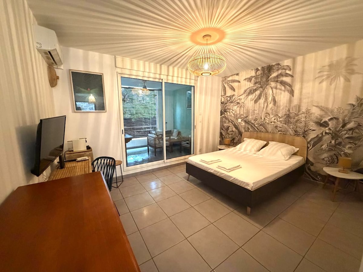 Magnifique studio au calme à mont vert les hauts à Saint-Pierre idéale pour 2 personnes Vous aurez à votre disposition une cuisine ouverte avec un coin séjours climatisée disposant d’un lit également une terrasse couverte avec jacuzzi privatif pour vos soirées détente Ce logement est préparé avec soin pour que vous vous sentiez comme chez vous. On vous serait très reconnaissants de le laisser aussi propre et accueillant qu’à votre arrivée. Cela permet à chacun de vivre une belle expérience ☺️