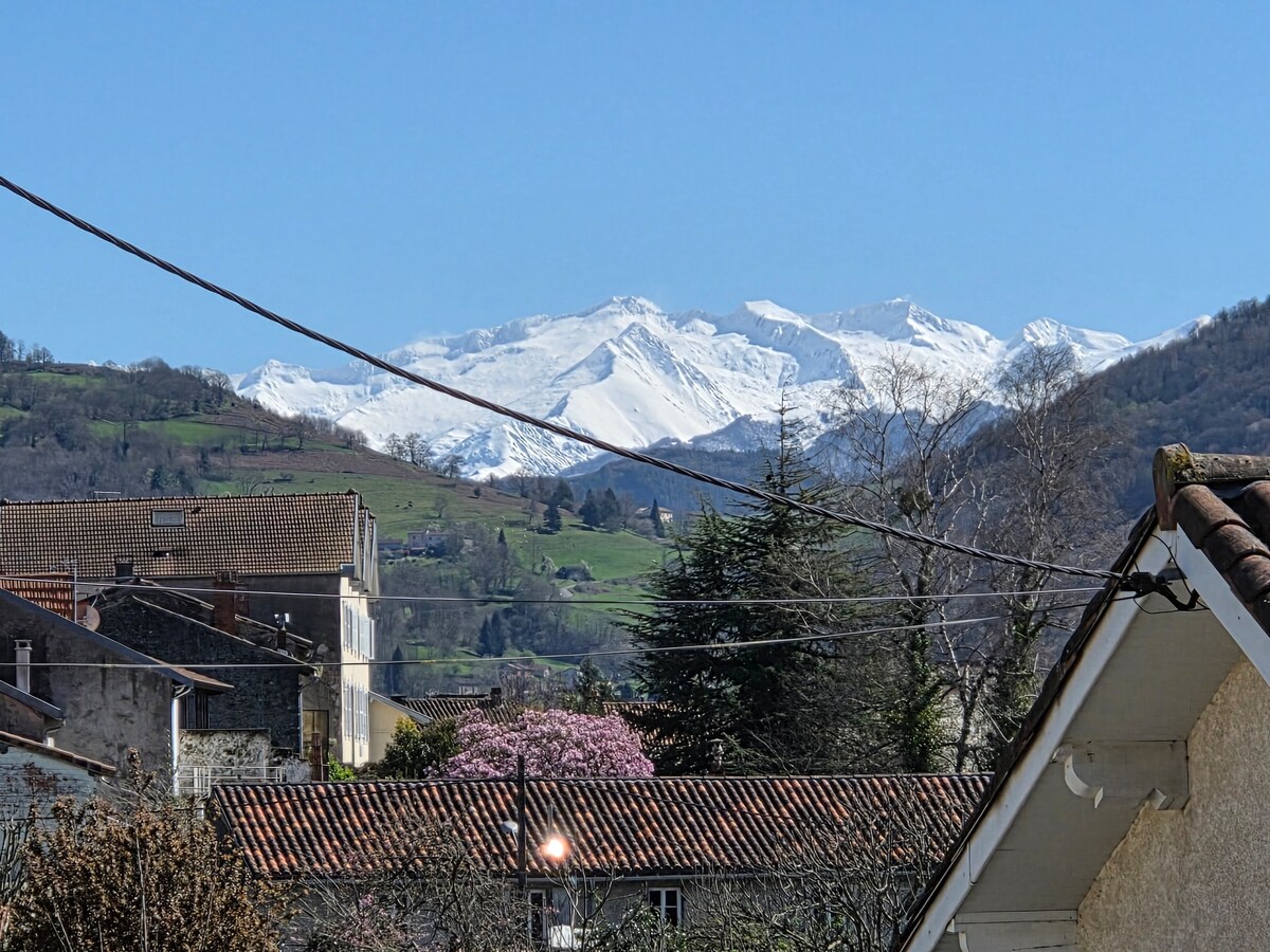Vue imprenable sur le Mont valier.... Maison en pierre rénovée mais ayant gardée son charme d antan, nichée au cœur des Pyrénées,dans un petit hameau AZAS (écrin de verdure..) à 1h30 de toulouse .. Besoin d évasion d un week-end où vacances Randonnées proches Internet dans la maison .. téléphone fixe 2km de Seix( commerces, Restaurants,garage,station service ) - pour les amoureux de la nature, de la pêche - randonnées -kayak -ski guzet neige Animations _transhumance 14 juin défilé