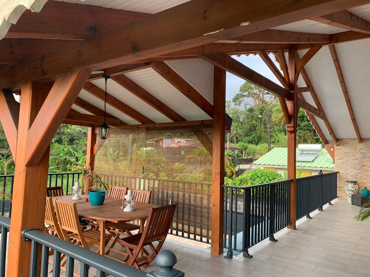 Vous souhaitez profiter d'un bel espace dans un cadre tropical, en plein coeur de la Guadeloupe ? Installez-vous dans la Villa Tarare, une maison de type créole en pleine nature ! Cette villa vous offre tout ce qu'il vous faut pour passer un séjour inoubliable et serein : grand espace de vie, cuisine totalement équipée, deux grandes chambres (possibilité d'un couchage supplémentaire), double terrasse et piscine ! De plus, elle se situe à moins de 10mn de toutes les commodités !