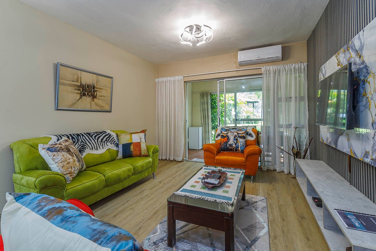 The Bridge Holiday Apartments is perfectly located on the main road of StLucia, bordering the lake, surrounded by natural fauna and flora, and within easy access to all amenities. It boasts rolling lawns and gardens, a pool, secure parking, and around-the-clock security. The apartment is a 1st-floor unit with a lake-view balcony. It is spacious and comfortable with 3 bedrooms and 2 bathrooms, and inverter backup power.