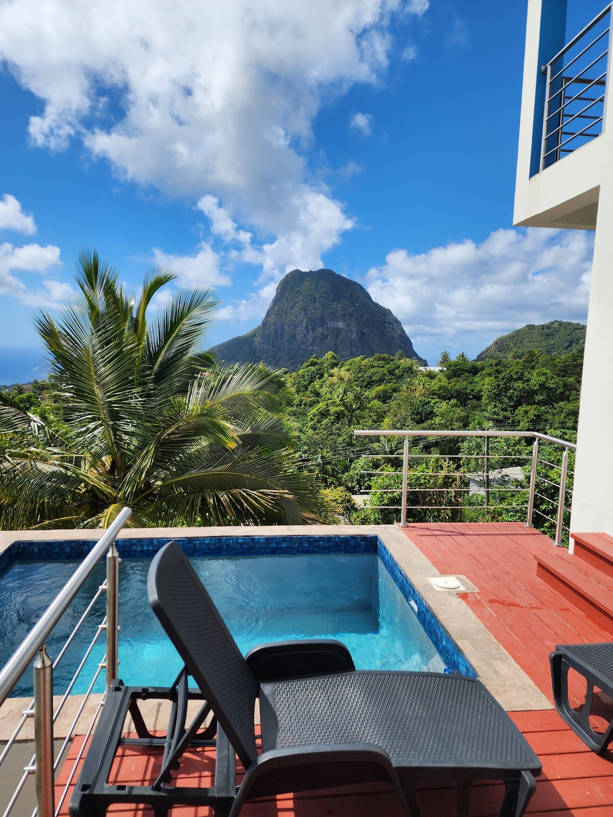 One of our guests, upon seeing the view immediately said "There are no words to describe this!" Nevertheless, we shall try; beautiful, tranquil, zen and serene! A modern house with spectacular views of Anse Galet Bay beneath, Martinique beyond and the green treetops below! Wake up to the sound of birds chirping and surf crashing! 10 minute drive from the beach, shopping, Pigeon Point Historic Fort and 3 minute drive away from great golfing! Bienvenue.........everything is within reach!!