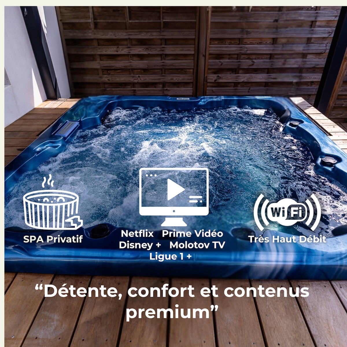 Vous souhaitez vous relaxer le temps d'un instant ? Venez découvrir notre logement équipé d'un balnéo pour vous permettre de vous détendre Pour votre confort nous avons sélectionné un lit queen-size. L'ensemble du logement vous offre des équipements de qualité. La cuisine, est équipée d'un plan de travail, une plaque de cuisson, un four micro-onde, une cafetière, un grille pain, une bouilloire. Le coin salon est composé de deux fauteuils en cuir avec reposes pieds. ℹ️ jardin partagé