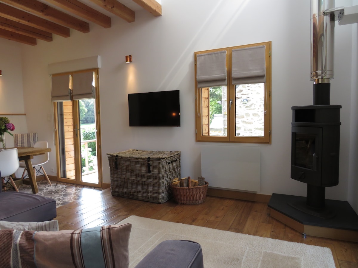 乡村小屋,距迪南 5 分钟车程,带北欧式浴缸,面向花园