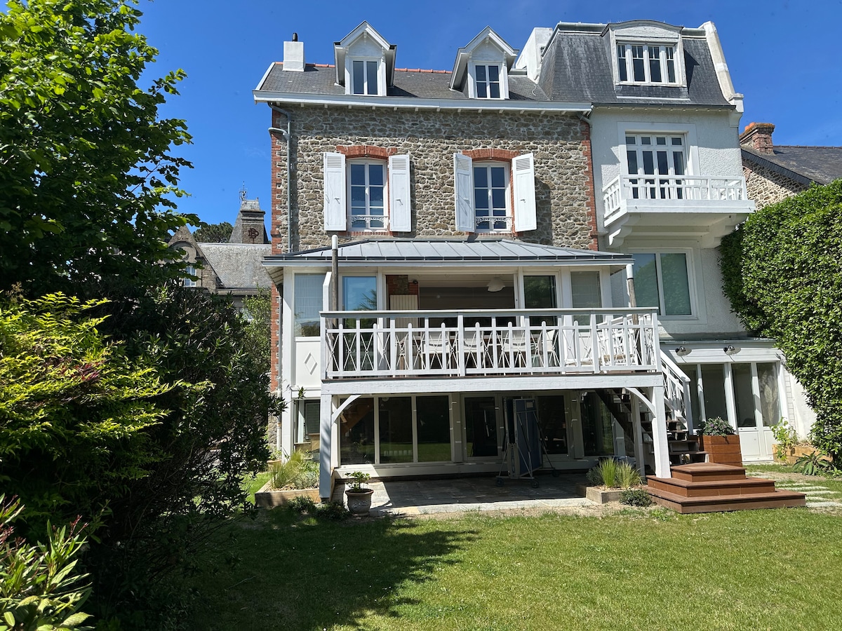 Belle Maison individuelle de 2 étages style "villas Malouines" du XIX siècle de bord de mer, à 50m de la plage du sillon pour vivre les grandes marées. Le village et les bateaux de la Route du Rhum à 10 minutes à pieds, appréciez à 2 pas le marché de rocabey -lundis, jeudis et samedis matins-. Situation au top, tranquille, ensoleillée, petit jardin entretenu avec mobilier et barbecue. Tous commerces à proximité (boulangerie, restaurants, supermarché carrefourécole de voile, surf et longe côte).