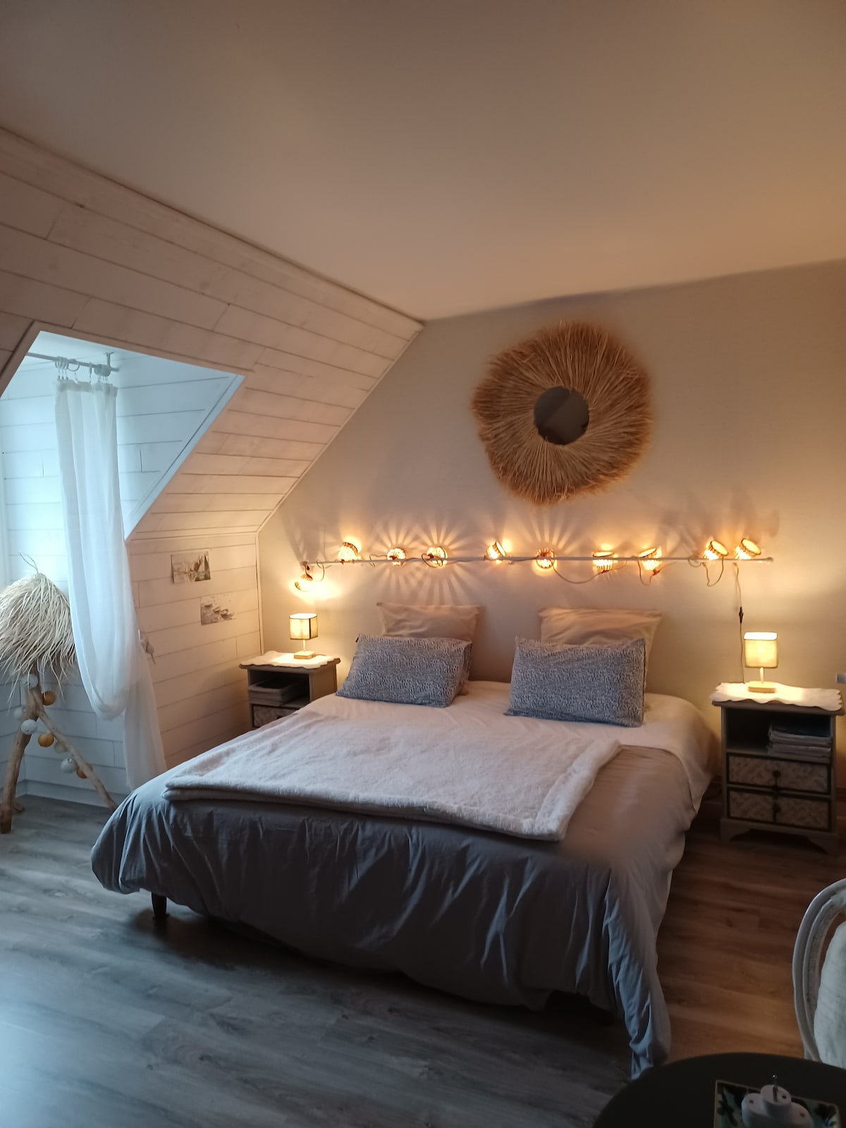 Quai 35 est une construction récente au sein du terrain des Grands Gîtes de Cancale, terrain qui surplombe la baie de Cancale et du Mont-St-Michel. Elle profite d’une vue Mer exceptionnelle, d’un espace jardin avec terrasse exposée Est et d’un parking privatif (2 voitures possible). Pour la décoration notre architecte d’intérieur a suivi les recommandations d’Olivier et Katy les propriétaires, et naturellement bois et couleurs chaudes assurent une ambiance élégante et pleine de charme.