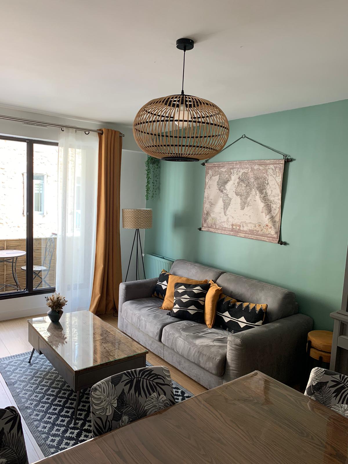 Appartement cosy, chaleureux de 46 m2 avec terrasse Sud aménagée, arborée en RDC (32m2) dans résidence récente et calme. Bien chauffé l’hiver. Parking gratuit A 5 mn à pied de la gare proche de ts commerces, 15 mn à pied de la ville historique et des plages Linge de lit fourni sur demande : 10 € par lit pour le séjour Serviettes de toilette fournies gratuitement Un 2è WC indépendant de la salle de bain Wifi gratuite Nbrx restaurants proches cuisinent en formule à emporter. Télé travail possible