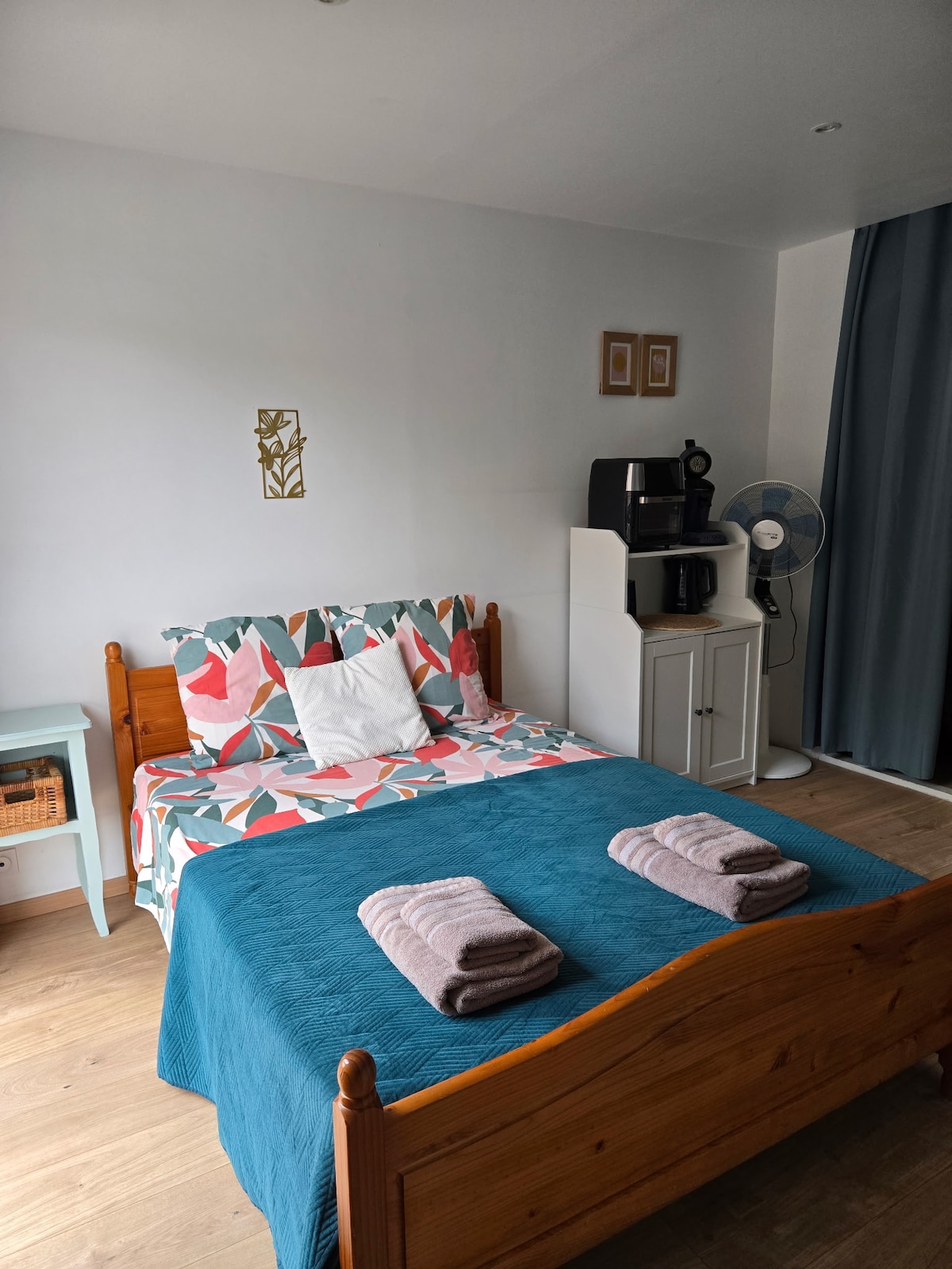 Détendez-vous dans ce logement calme et élégant . Profitez du SPA avec une vue imprenable sur la pinède . Ambiance campagne chic . Petit appartement de 35 m2 , avec une chambre , salle de bain et wc . Séjour avec convertible , table et cuisine équipée . Très grande terrasse , SPA 5 places , réservé à l appartement . Je passe tous les jours vérifier la bonne utilisation du spa et le nettoyer . Possibilité de supplément si mauvais usage . Petit déjeuner en supplément .