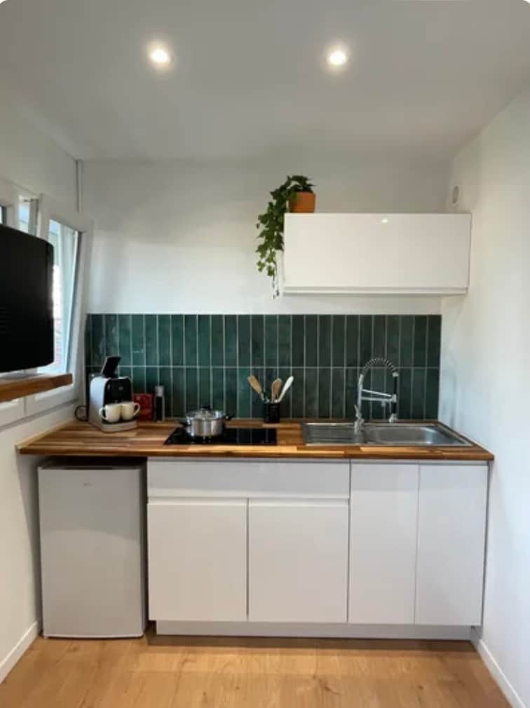 Bienvenue dans cet appartement élégant et minimaliste, idéalement situé au centre ville proche de tous commerces. L'appartement dispose d'une pièce à vivre ouverte, avec un salon cosy et un coin repas moderne. La chambre dispose d'un lit queen-size confortable, et la salle de bain moderne est équipée d'une petite baignoire. Cet appartement est également équipé de tout le nécessaire pour un séjour pratique et agréable : connexion Wi-Fi haut débit, télévision à écran plat.