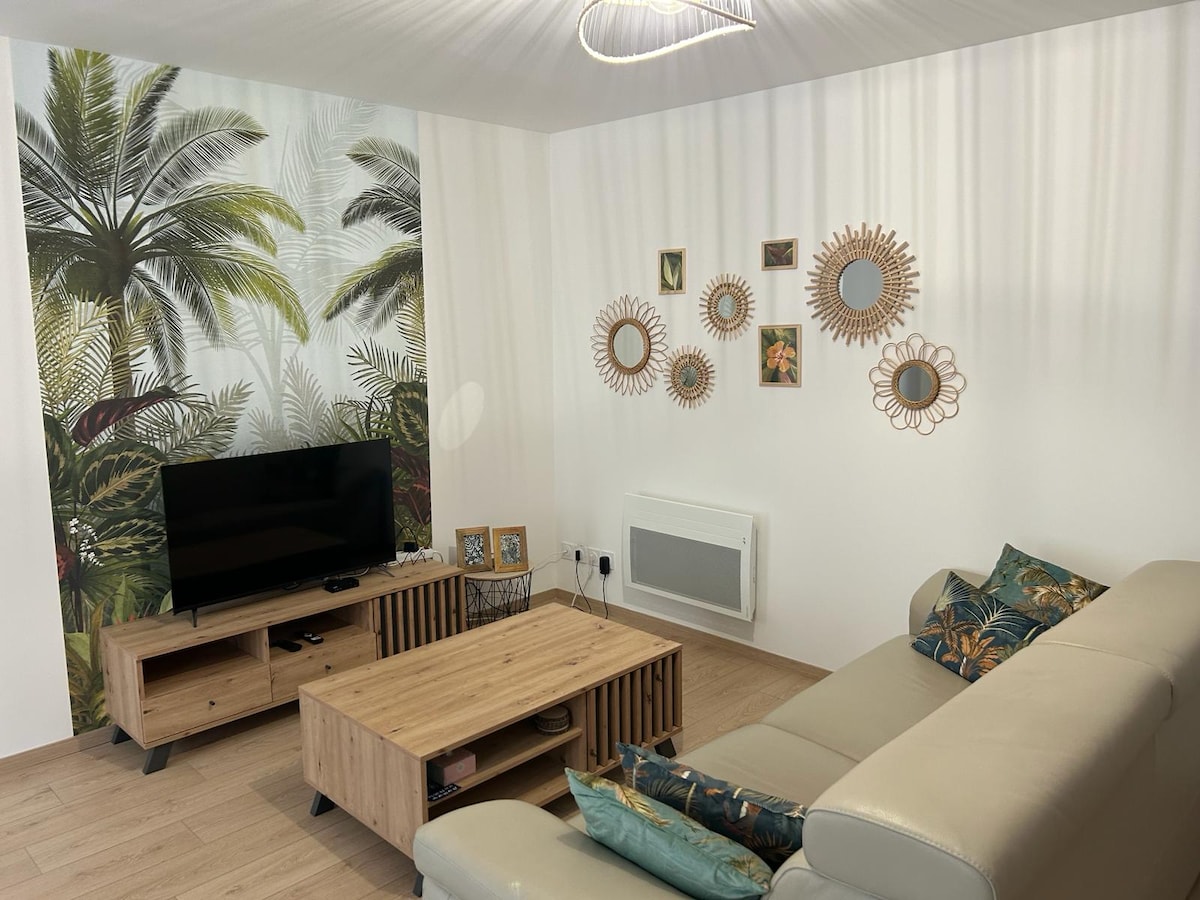 Détendez-vous dans ce logement calme et élégant. Appartement de 39m2 refait à neuf, dans un immeuble de 4 logements. Une pièce principale équipée d'un canapé d'angle convertible, d'une table basse, d'un meuble tv avec écran plat . Une cuisine entièrement équipée avec plaque vitro, four multifonctions, micro-ondes, réfrigérateur no Frost, grill pain Une chambre avec lit de 160X200 pour plus de confort avec très bon matelas Une SDB composé d'une vasque, une douche et machine lavante séchante