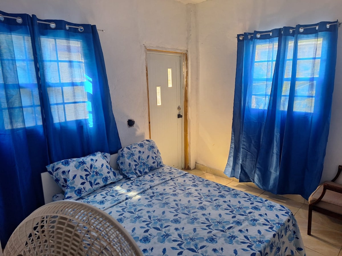 "Hilltop Retreat" is a cozy bachelor-style guesthouse perched on a hillside in Sint Maarten with Caribbean vibes surrounded by plants and fruit trees. The suite has a private entry and street parking. Nearby there's the popular St. Peters Hike and the Marigot (French Capital) hike, where wild goats, cows, monkeys, and iguanas are often seen. A vehicle is recommended—supermarket 10 min, Philipsburg and beach 15 min, airport 30 min via scenic touristic route. Budget-friendly and relaxing.