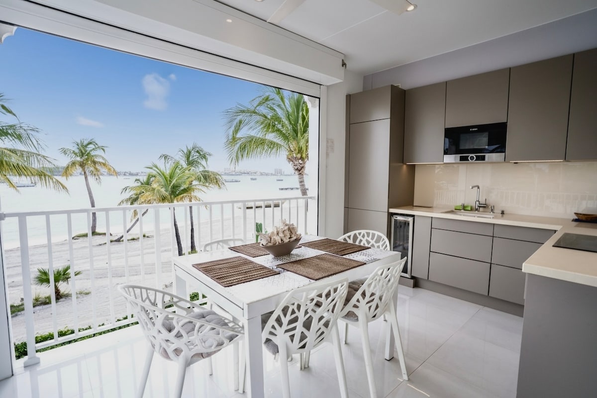 泻湖和大海之间的宽敞双卧室公寓!