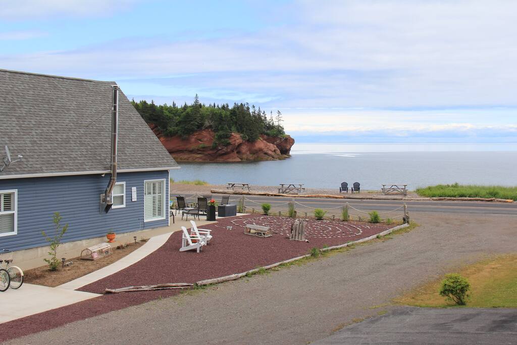 Welcome to the Edge! Standing right atop a majestic cliff, the Edge will have you experience the most stunning panoramic views of the Bay of Fundy. Beautiful ocean views will greet you wherever you are. Sitting at your dinning counter or in the comfort of the living room, taking a soothing shower or jumping in your wood-fired hot tub, enjoying a bone fire or retreating to the loft for the night... Ocean views everywhere!