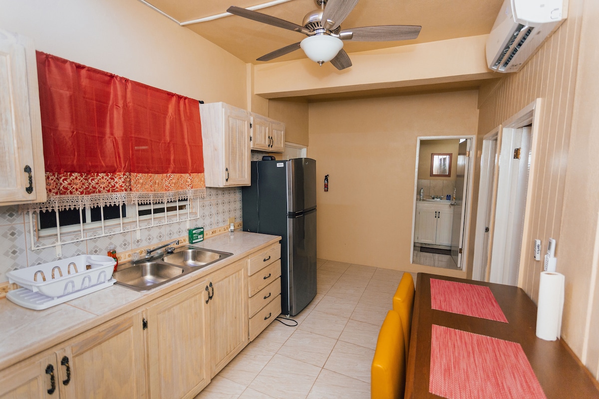 Beautiful holiday home. This spacious apartment is nestled in the heart of a vibrant community - 10 minutes drive away from city centre. Centrally located near local transport links, providing easy access to any place on the island. We are 7 minutes walking distance from a main bus stop. Closest Beaches are Fort James and Dickenson Bay, Ffryes, Darkwood and Turners, Jolly Beach. Less than 30 minutes drive. All beaches are public and some have great bars and restaurants.