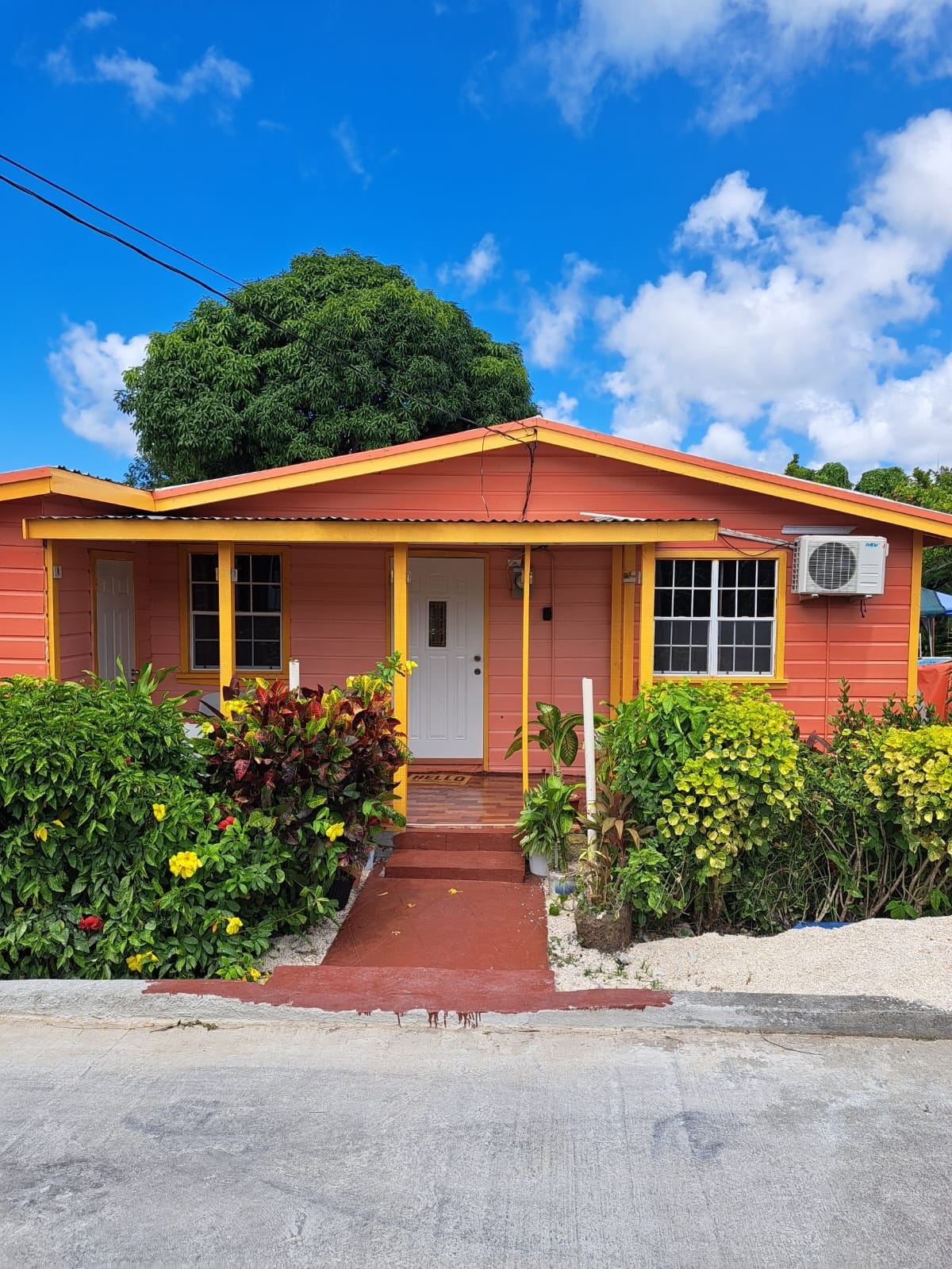 Situated next to house #1 on Hunt Road and Locasgate Road, this large house have three bedrooms with two double bed each with cooling fans while the largest bedroom have a queen sized bed and air condition(AC). The open dining and living room space have a large fan. The kitchen has a large stove with an oven and utensils for guests use. A large NexGrill is available for the Barbecue enthusiast near the Patio. The house #1 with a double and kingsize bed next door can hold additional guests.