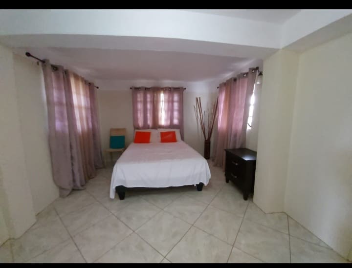 OUR PROTOCOLS ARE CERTIFIED AGAINST COVID-19. Relax with the whole family at this peaceful place to stay. Located in the Cattle Bay section of Old Road our guesthouse has two bedrooms and one bathroom. The guesthouse is fully equipped with air conditioning, washing machines, towels, sheets and a loaded kitchen. The classic Caribbean style is reflected in the architecture and interior designs.