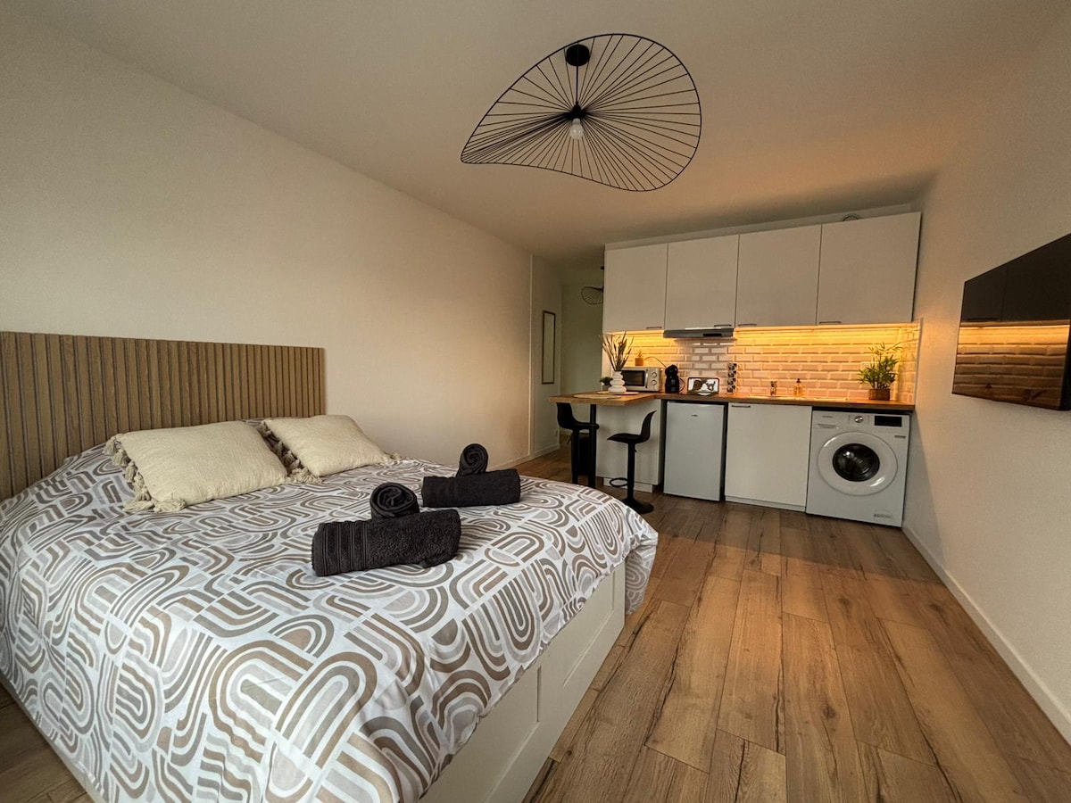 Welcome to this beautiful, brand-new apartment, nestled in a peaceful residential neighborhood, perfect for a relaxing getaway near Paris. This modern retreat features a fully equipped open kitchen and a bright living room with a comfortable sofa bed and a smart TV. The bedroom, with a high-quality double bed, ensures restful nights, while the spacious bathroom offers a relaxing space after your days of exploration.