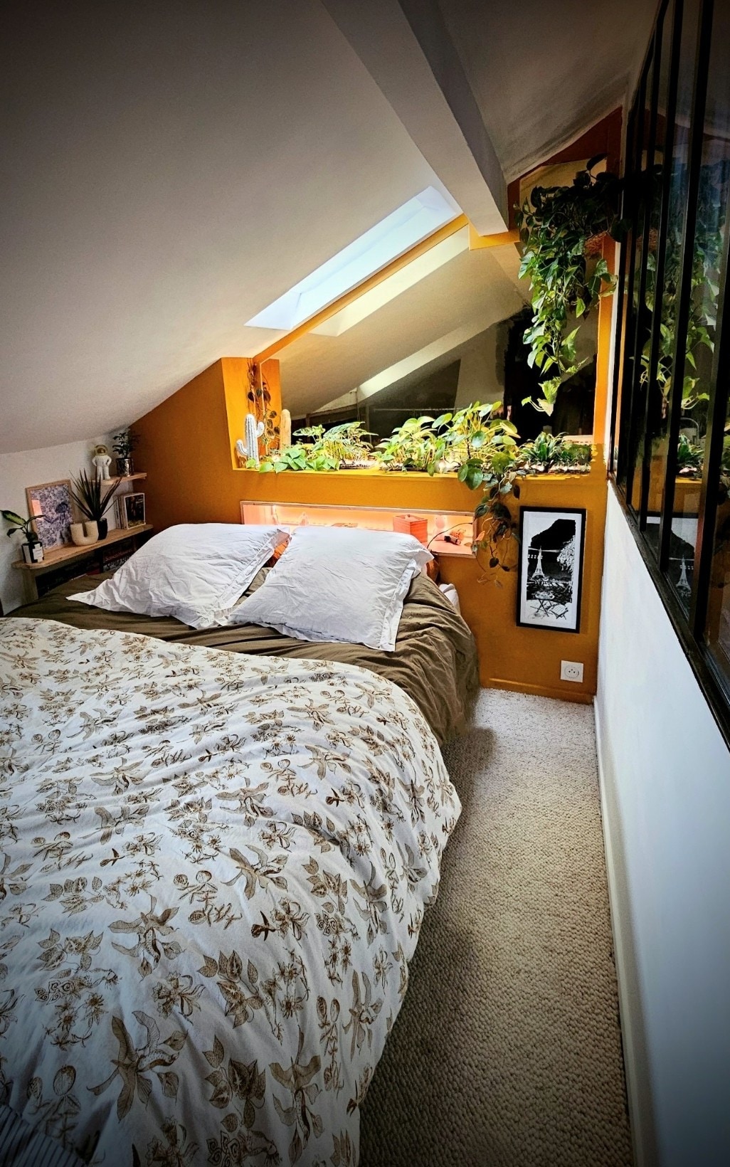 New apartment totally renewed by an architect, a lot of light, under the roof with the top of the Eiffel Tower view! In the heart of Batignolles and Montmartre district, at 10min walking distance from the Sacré Cœur, at 10min walking distance from Moulin Rouge and the very dynamic district Pigalle, at 20min walking distance from Madeleine/ Concorde... On the 5th floor without elevator but a great space, light and view when you re in the apartment! It worths it!