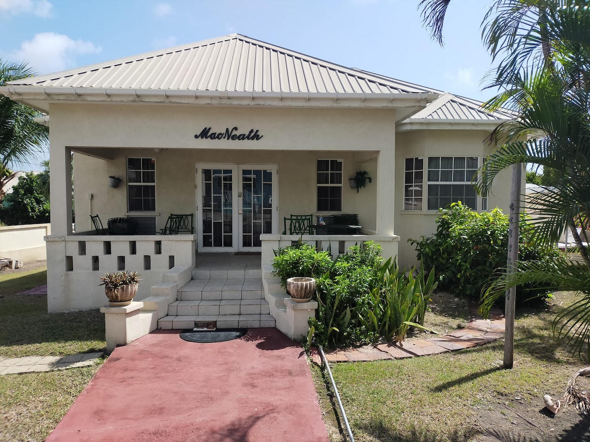 Two bedroom, two bathroom open plan tropical cottage nestled in a family neighbor hood located on the beach front with private access to one of the Islands most beautiful beaches. Well situated patio and deck to appreciate the open window to the Sea enjoying evening sunsets. All the comforts of home away from home. Centrally located 5 KM from the City of Bridgetown. We do recommend renting a car during your stay to fully maximize the Islands beauty!