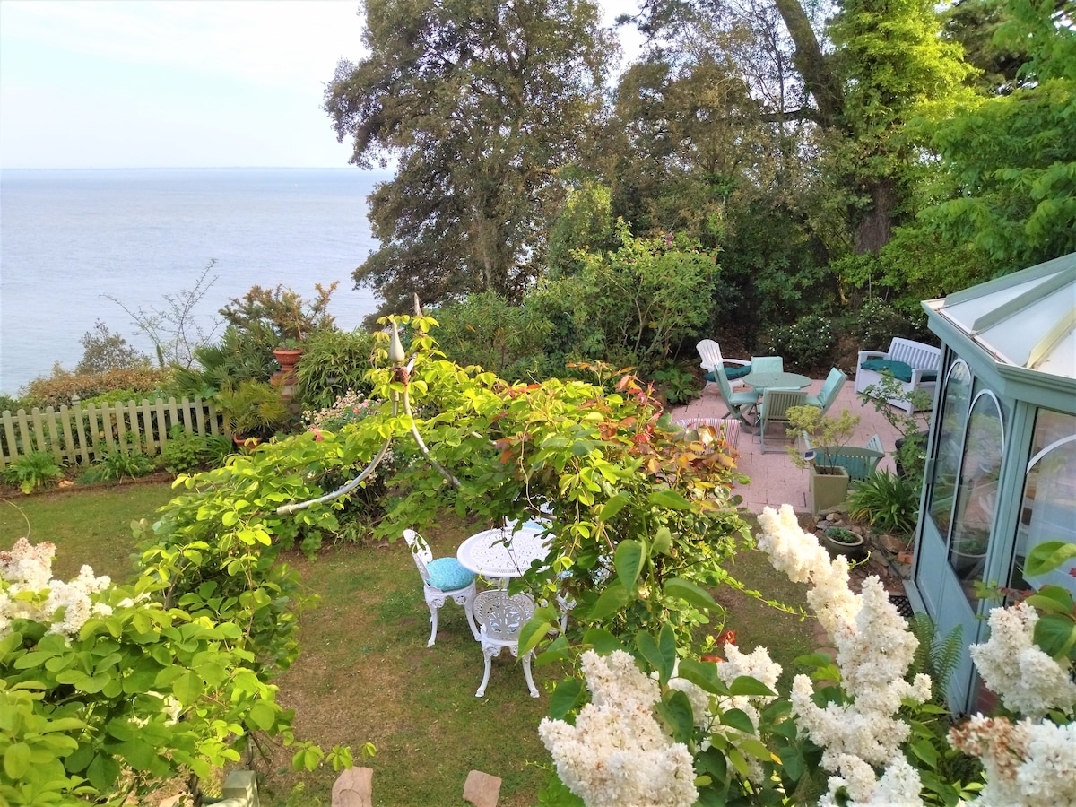 Contact: "Les JOLY clés d'Elise" Petit gîte de 40 m2, avec Loggia et vue imprenable sur la mer et ses falaises. Cette maison se situe dans le jardin d'une belle propriété, bord de mer. Animaux NON acceptés Maison pour 4 pers: -une chambre lit double, -une salle de bain wc, - une petite cuisine, - un séjour, -un lit double en mezzanine, -une loggia vue mer, -une terrasse ombragée. Chemin côtier pour de superbes balades Possibilité de rentrer dans la propriété pour déchargement bagage