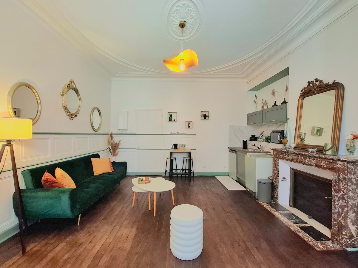 Enjoy stylish city centre accommodation at the foot of the marshes Near Place Gordaine, one of the most charming places in Bourges, with a pub, brasseries and restaurants Everything within walking distance: cathedral, Jacques Coeur palace, park, water sports centre 5 mn away, train station 15 mn away. - bedroom/living room: a pull-out bed that becomes a real king-size bed 180x200. The sofa can be used as an extra bed 186x100 (for a child). - fully equipped kitchen - shower room with wc