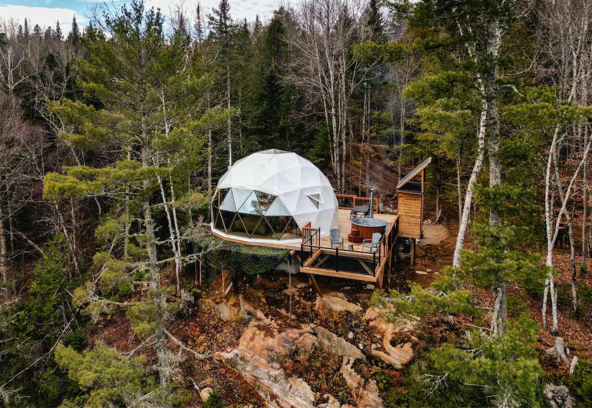 Visit our Airbnb profile to discover our 6 private domes! : ) Welcome to Domaine l'Évasion! Enjoy a romantic getaway under a starry sky. Relax in your private 4-season spa, nestled in the heart of a coniferous forest, lulled by birdsong. ★ 25 minutes to Tremblant ★ Private 4-season spa ★ Indoor Gas Fireplace ★ Fire pit ★ Picnic area with BBQ ★ Hiking trail ★ Private shower ★ Full kitchen ★ AC