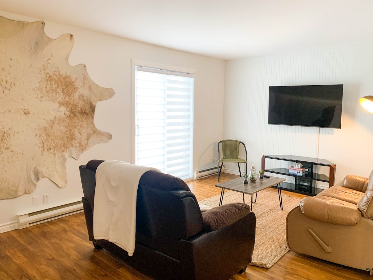For your vacations choose the Chalet Horizon, an Eden in nature with a view of the mountains ♥ You will appreciate the chalet thanks to: ✷ Semi-private beach 5 minutes away ✷ Large private land, totally surrounded in pure nature ✷ Large bright windows with a view of the horizon ✷ Luxurious and comfortable spaces ✷ Spa open all year round ✷ Terrace equipped with a BBQ and gas fireplace ✷ Smart TV with speakers ✷ Indoor cozy gas fireplace ✷ Foosball table ✷ Wine bar