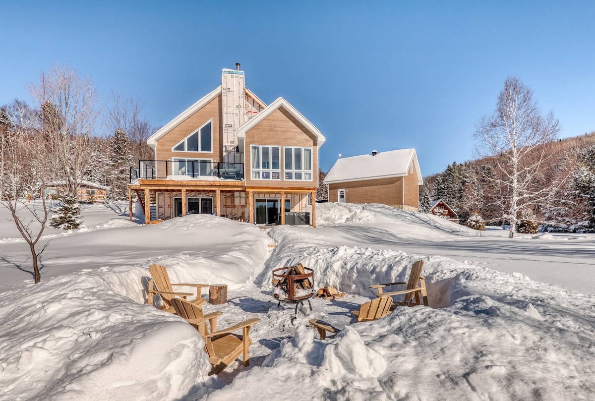 For your vacations choose the Chalet Horizon, an Eden in nature with a view of the mountains ♥ You will appreciate the chalet thanks to: ✷ Semi-private beach 5 minutes away ✷ Large private land, totally surrounded in pure nature ✷ Large bright windows with a view of the horizon ✷ Luxurious and comfortable spaces ✷ Spa open all year round ✷ Terrace equipped with a BBQ and gas fireplace ✷ Smart TV with speakers ✷ Indoor cozy gas fireplace ✷ Foosball table ✷ Wine bar