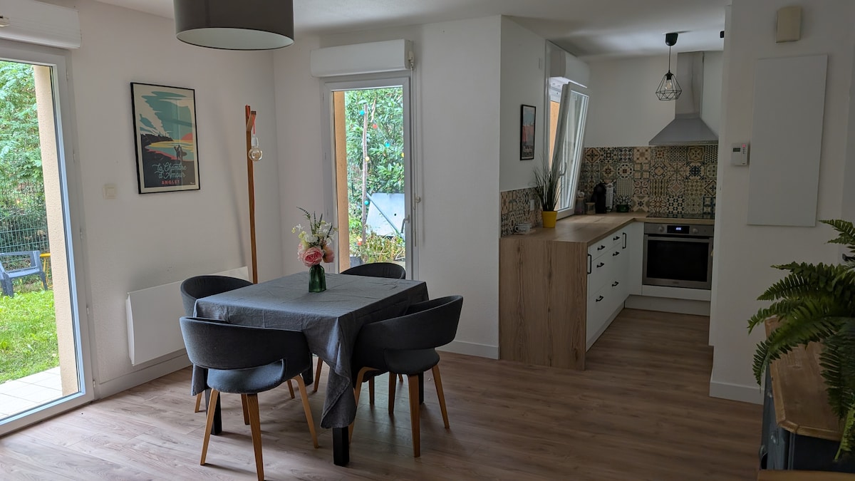 T2 lumineux, avec Clim réversible, composé d’une chambre double et d’une salle de bain privée. D’un salon cosy équipé d’une banquette d’une place. D’une terrasse et d’un jardin entièrement clôturé pour vous détendre. Wifi et parking gratuit. Idéal pour un séjour reposant dans un joli village calme, entouré de vignobles et proche des commerces et des grands axes. À 5 mn de Bressols et du péage, à 15 mn de Montauban et à 35 mn de Toulouse.