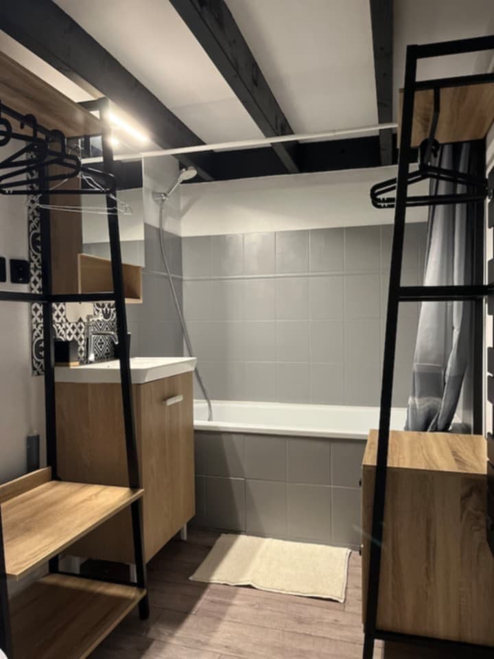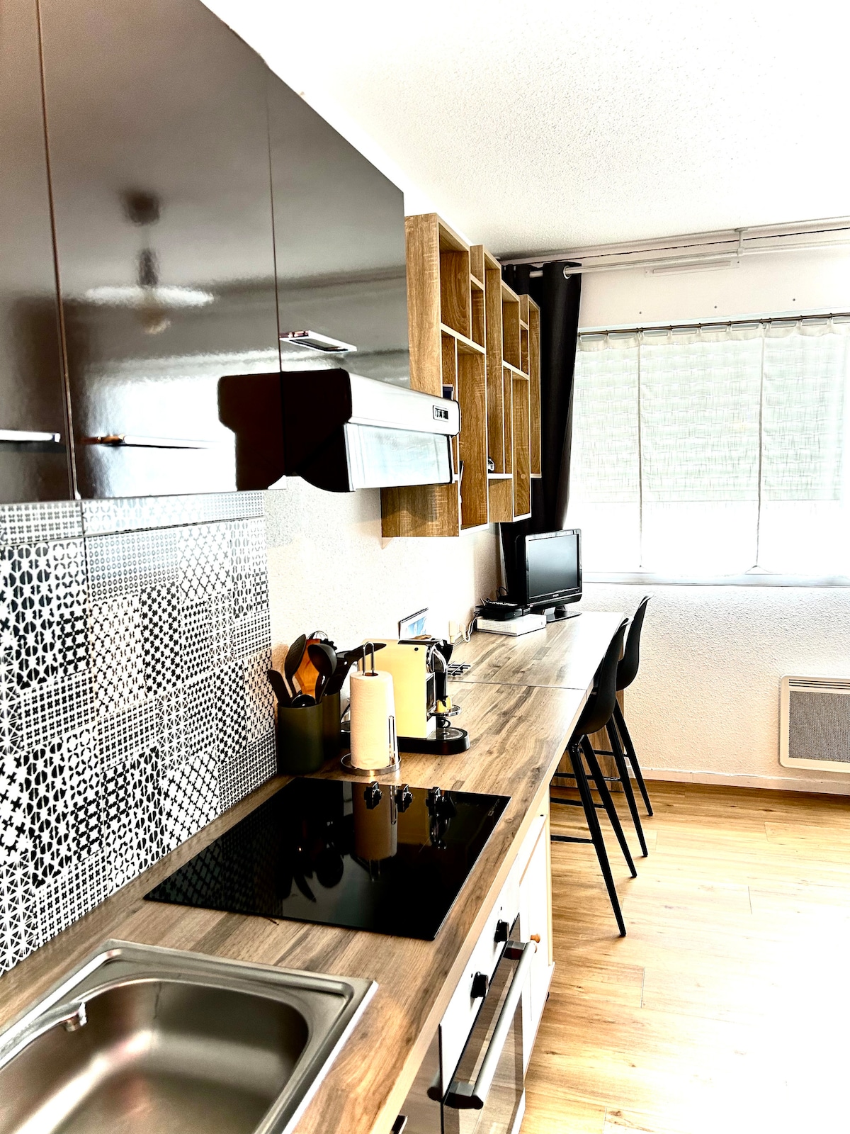 🌊 Près de la mer, studio entièrement aménagé et équipé avec une cuisine : four, plaque, hotte, micro-ondes, lave-linge, ainsi qu'une table pliable et légère pour un gain de place optimal 🍽️. Le salon dispose d’un lit queen size 🛋️ et d’une TV écran plat 📺. La salle d’eau est moderne avec douche à l'italienne 🚿, meuble vasque et WC 🚽. Une place de stationnement est incluse 🚗. Le logement est situé dans un éco-quartier 🌱.