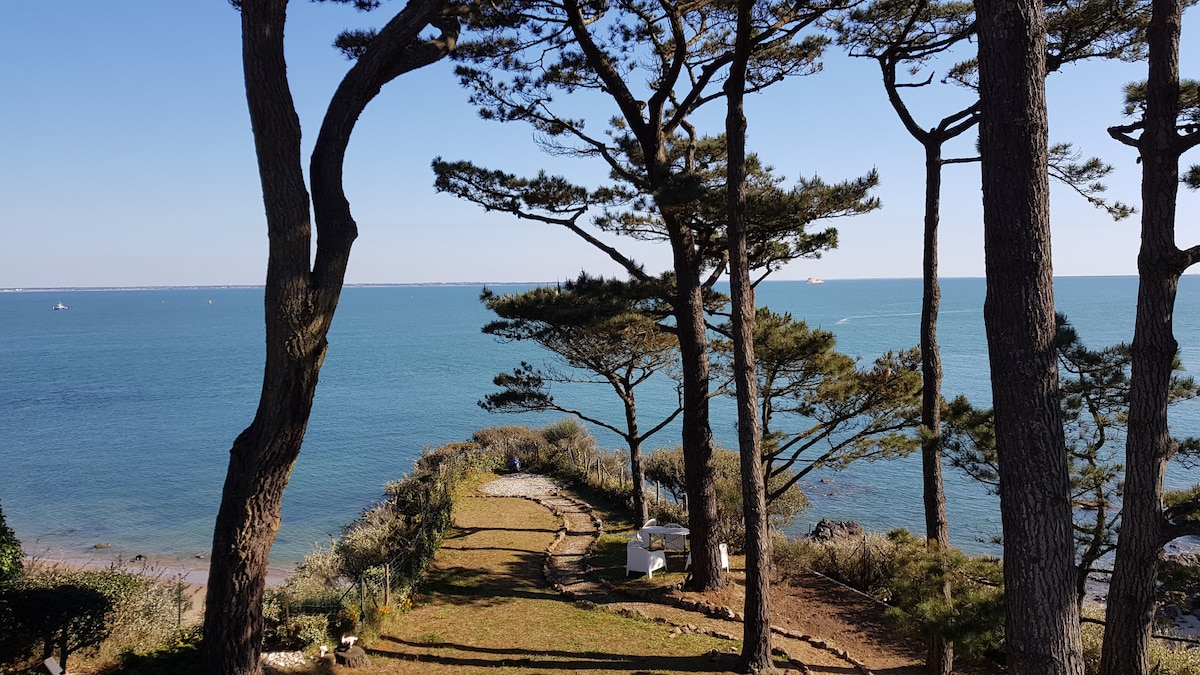 La jolie "Canadienne", très confortable, est en première ligne plein sud face à l'océan. C'est un endroit sauvage et calme en bord de mer, sur une parcelle de 2200m2 plantée de pins centenaires surplombant la mer entre Sainte Marguerite de Pornichet et le bourg de Saint-Marc-sur-Mer (La Baule et Saint Nazaire à 10'). Que ce soit dans le salon, dans la cuisine, sous la douche ou au fond de votre lit, vous verrez la mer ! Un escalier privé vous mènera à une jolie crique très peu fréquentée.