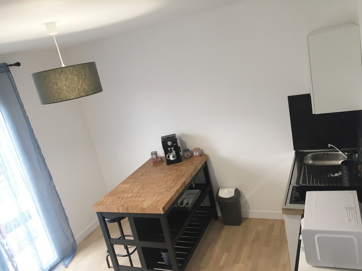 Appartement douillet et indépendant avec petit jardin face au bois . A 5 minutes à pied des plages de la Courance et de Mr Hulot. Idéalement situé pour visiter Pornichet, la baie de La Baule et le célèbre chantier naval de St Nazaire . Terrasse transat et salon de jardin, cuisine équipée avec ilot central sur salon, salle de bain, coin chambre auprès de l'aquarium qui reste très silencieux la nuit .