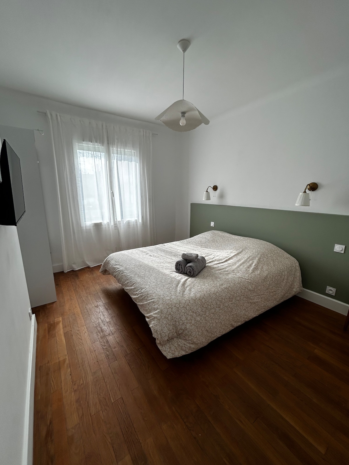 Our apartment is perfectly situated in Petit Maroc, the oldest neighbourhood in Saint Nazaire. From the living room, you can watch the canal lock in operation and the boats (boat movements). You can get to all the tourist attractions of the city, the beach and heart of the city, Place du Commando, on foot or by bike. With a surface area of 40m², the kitchen area faces east, on the garden side and the living room and bedroom face west, with a clear view of the sea and the setting sun.