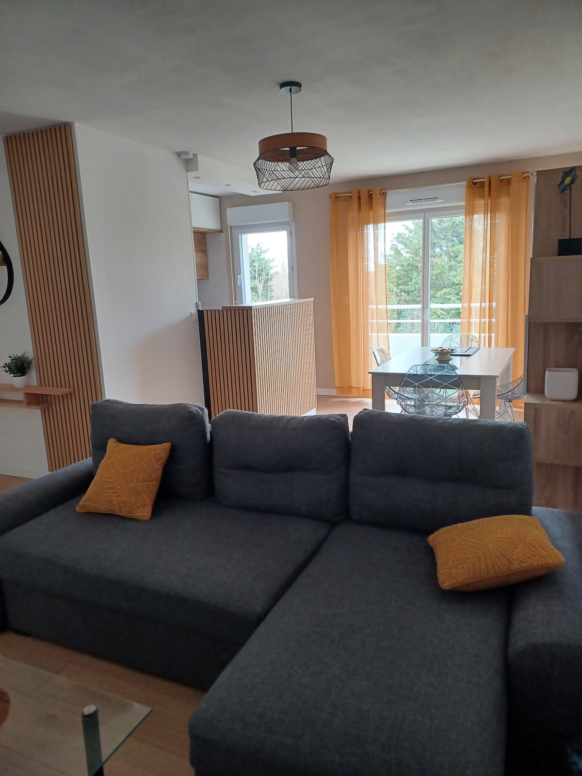 Je loue mon appartement situé à 10 minutes de la plage de porcé à pied, à 10 minutes en voiture de Pornichet et 15 minutes de la Baule. Le bâtiment est sécurisé avec camera de surveillance dans les espaces communs. il est au 5 ème étage avec ascenseur , sur une place où se trouve un Carrefour market, une boulangerie, une poste, une pharmacie, et Baker. Le mercredi matin, il y a un marché sur la place. Un lit parapluie et une chaise haute sont à disposition si vous voyez avec votre bébé.