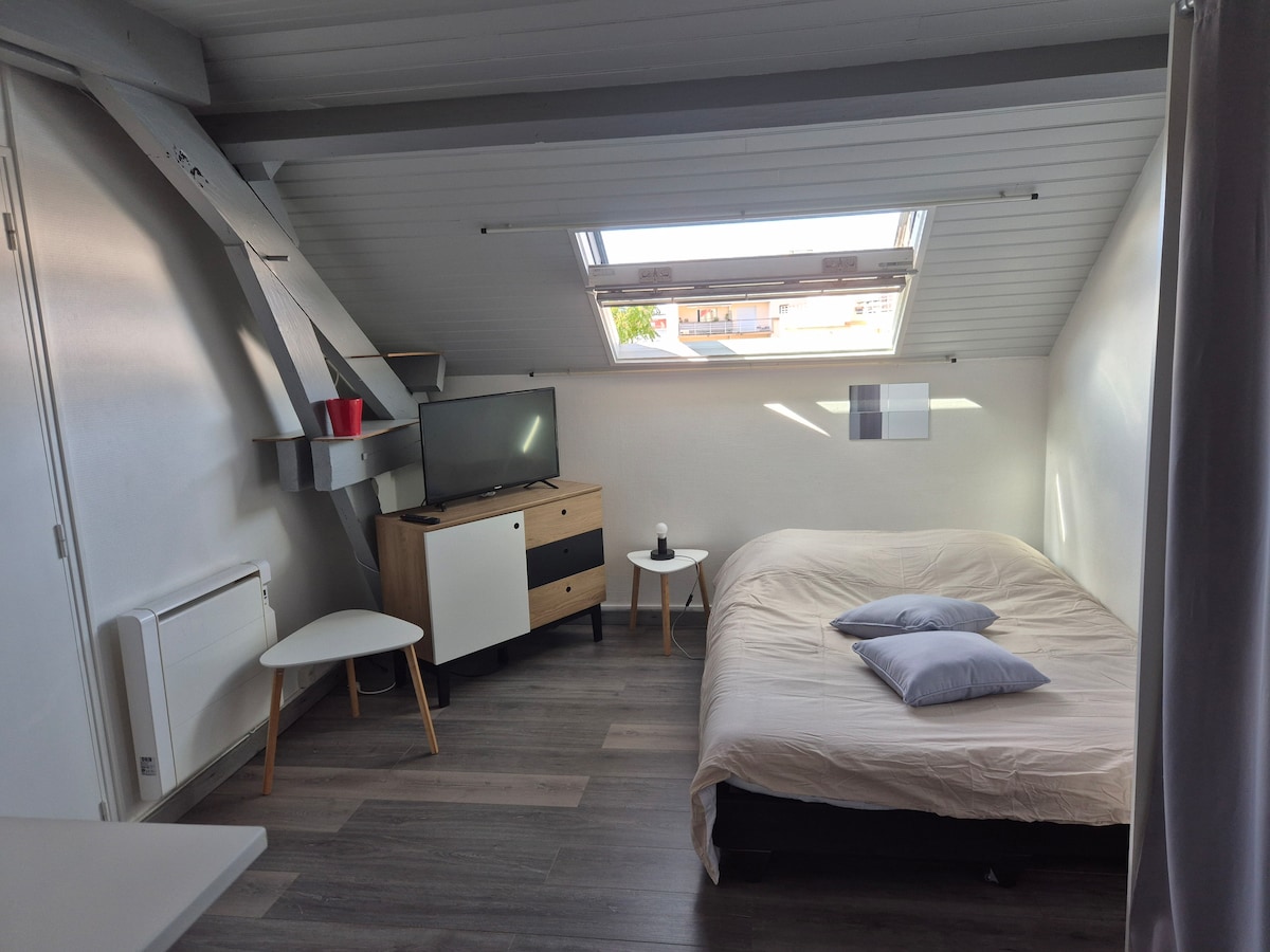 Studio rénové au 2ème et dernier étage d'une petite copropriété calme de 4 logements. Tout proche du quartier historique de St Nazaire préservé des bombardements avec ses belles maisons d'avant guerre. À 5mn à pieds de la mer, 10 minutes de la place du Commando et ses bars et restaurants. . Idéal pour visiter notre belle region (La Baule, St Brevin, la Brière)... Restaurant, pizzerias, crêperie et supérette à 2mn à pieds.