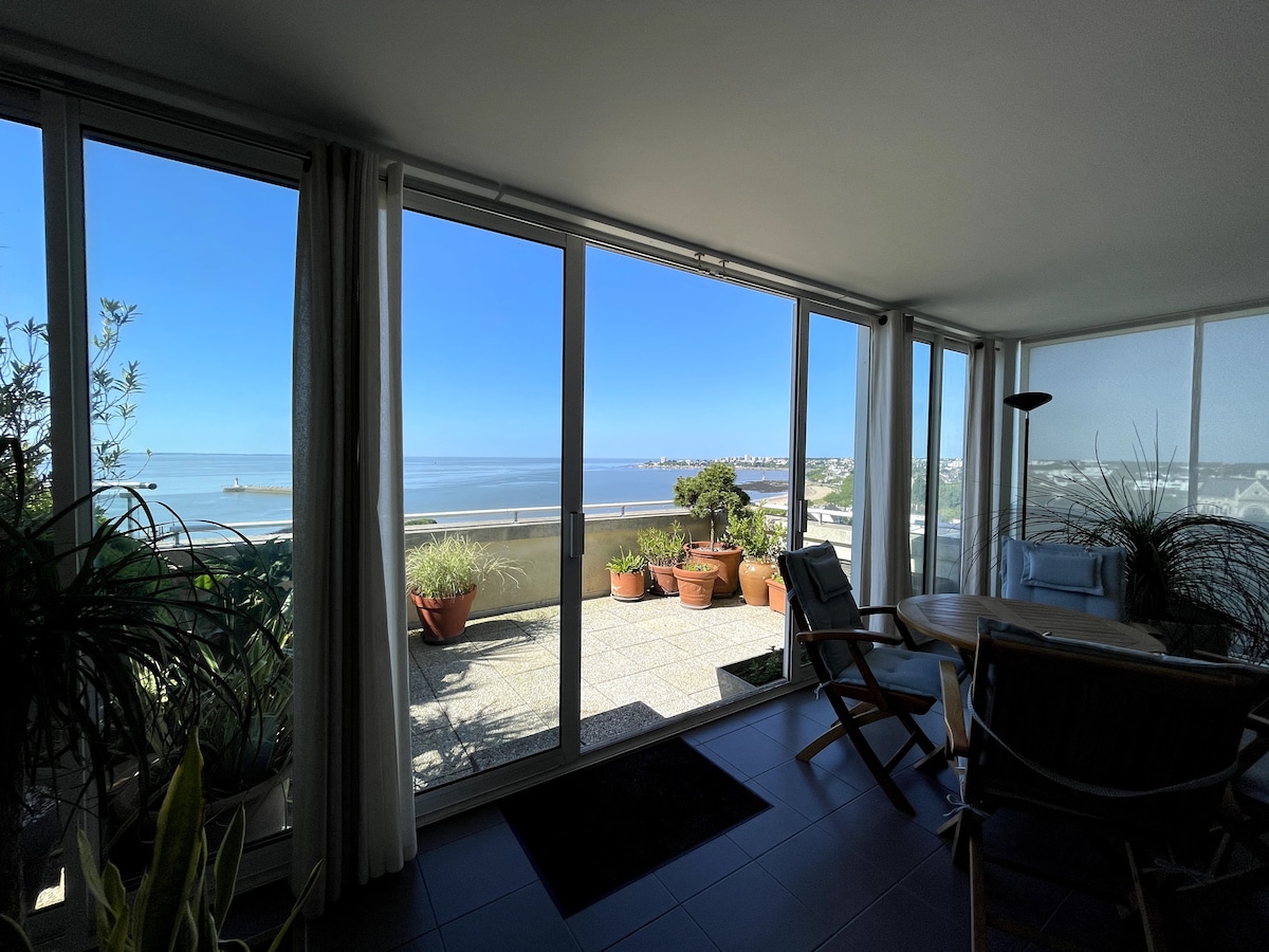 Depuis le 11e et dernier étage, l'appartement offre une vue imprenable: sur l'estuaire d'un côté avec les plus beaux couchés de soleil, et vue sur le port de Saint-Nazaire et son atmosphère unique de l'autre (et les plus beaux levés de soleil). L'appartement est baigné de lumière tout au long de la journée, c'est un vrai havre de paix. Il est situé près de commerces, de la place du commando avec ses bars et cafés, et la plage est au pied de l'immeuble. Il est parfaitement équipé.