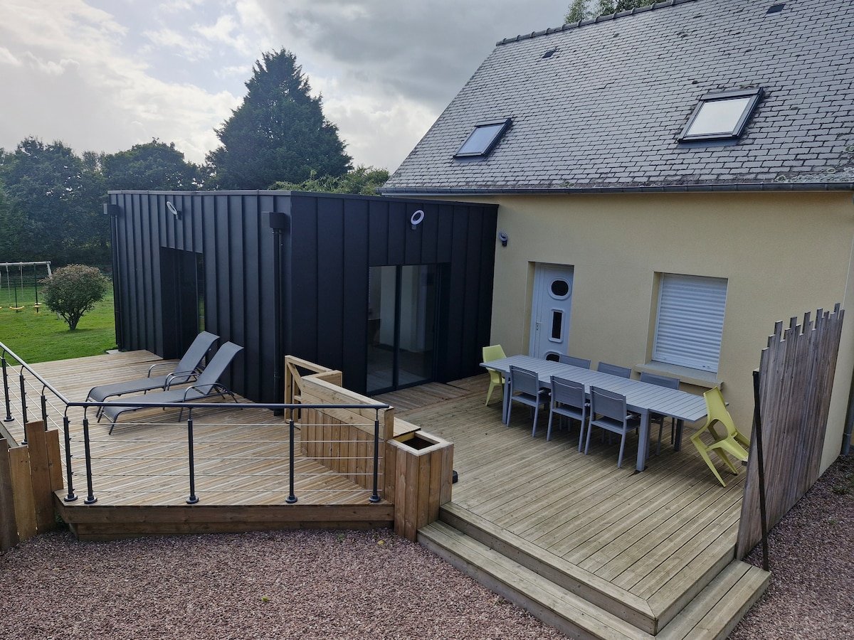 Détendez vous dans ce logement calme et élégant. Le rez-de-chaussée offre un espace de vie très confortable et spacieux avec une cuisine très lumineuse, un îlot central pour le repas et un salon avec télévision, ainsi qu'un wc. A l'étage, vous trouverez l'espace couchage avec deux chambres et une salle d'eau avec wc. L'espace terrasse est équipé pour la prise de repas à l'extérieur et la détente. Le bois de chauffage reste à la charge du voyageur. Il n’est pas fourni.
